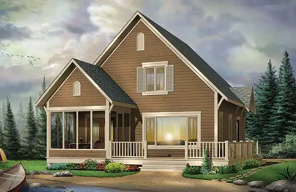 This getaway home design would look great surrounded by trees in the country, or on a peaceful street in the city. Part of the wraparound porch is screened, so you can enjoy a summer evening without being attacked by insects. The welcoming foyer offers a handy walk-in closet. The family chef will appreciate the island kitchen. The living room flows into the versatile dining room. Three bedrooms share a full bath on the upper level.