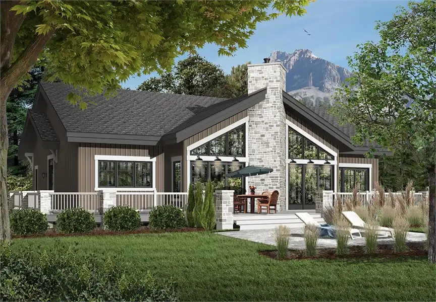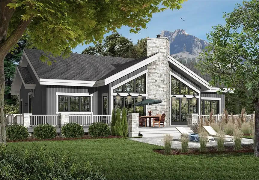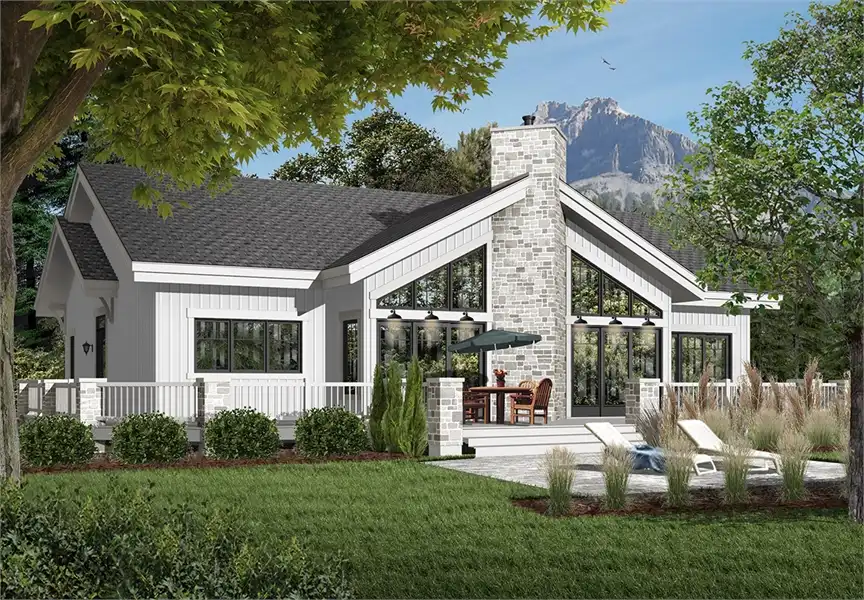 This cottage style plan is perfect for a quiet beach or a calm lake. Whether you are building a vacation home or looking to live year-round, this 2,146 square foot home is as beautiful as it is practical. With 4 bedrooms and 3 bathrooms, this plan has enough space for a large family or guests, with the privacy that everyone needs. With all of the rooms located on a single floor, this plan models after a ranch styled home, but the sprawling layout makes it feel anything but small. This home is all about views. Whether you are sitting on the majestic wraparound porch on a summer evening or looking out over the water through the towering windows that adorn the great room, this home has no shortage on breathtaking views and splendid natural light. Upon entering the front door, you are greeted with 9’ ceilings that span the entire home, making it feel open and airy. A large coat closet makes storage for guests an ease. The open layout of the home flows past 3 hallway bedrooms, 2 of which share a bathroom and one that has its own private bathroom, perfect for guests and their privacy. To the left you will find an expansive great room and dining/kitchen combination. Vaulted cathedral ceilings accentuate the space and draw the eye to the gorgeous windows that look out over the views outside.  A fireplace draws you even further together as this space beckons for quality time with family and friends. The final piece of the home is the master suite. Beautiful sliding glass doors provide private porch access, while a large walk-in closet and bathroom provide plenty of space for relaxing and enjoying your time spent in paradise.