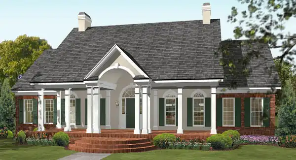 You can see why this is a popular one-story design, with its gorgeous curb appeal! The nostalgic front porch is great for conversing with friends and neighbors. Inside, a fireplace warms the spacious great room. The up-to-date kitchen boasts a breakfast area and a handy pantry. The deluxe master suite is anchored by a corner garden tub.