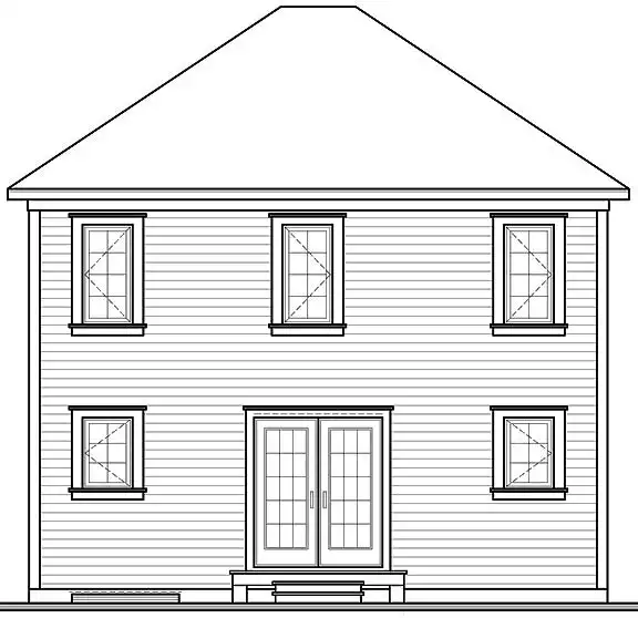 Two pairs of columns support the entry canopy of this sublimely symmetrical traditional home. The sidelighted entry branches left to the living room or right to the dining room. The kitchen enjoys a modern breakfast peninsula and efficient prep zone. Tucked discreetly in the corner, discover a combined half-bath and laundry room. A functional pinwheel configuration at the top of the stairs minimizes wasted space. The bedrooms and bath are surprisingly roomy in a house with such a modest footprint. Because of the simplicity of detail, this house plan would be very economical to build, allowing you to spend a bit more on quality interior finishes. And don't forget, you also have a basement to be finished as desired.