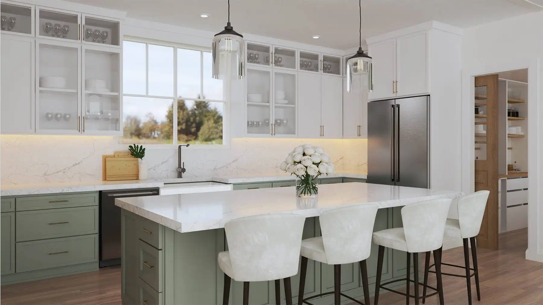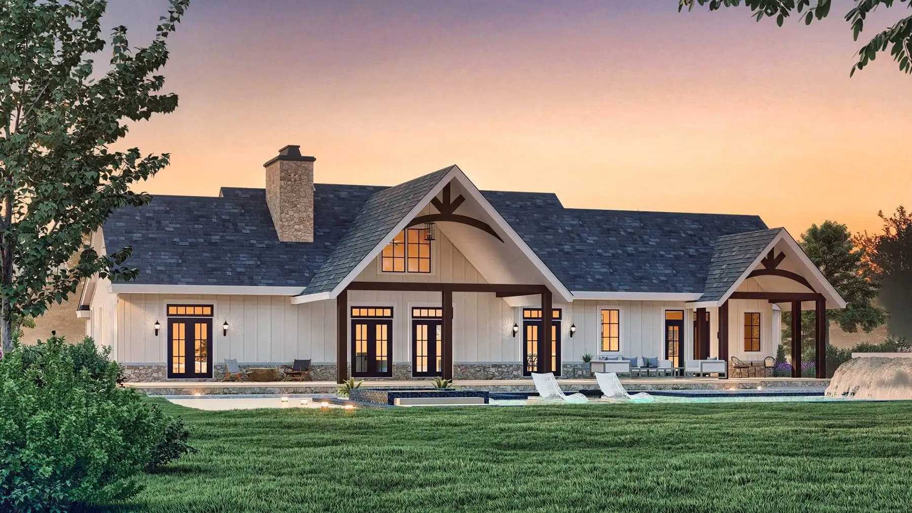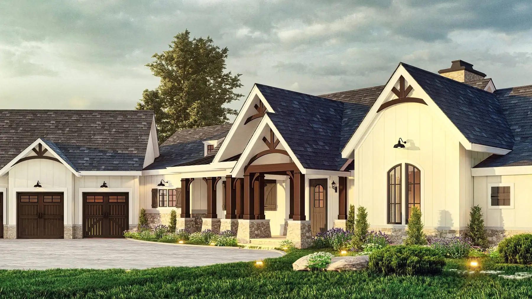 House Plan 4686 is a wonderful ranch made for taking in rear views, so give it your consideration if you're building near a lake or on acreage! This 2,537-square-foot design has 3 bedrooms and 2.5 bathrooms in a thoughtful layout that checks the boxes for today's families. First up, there's a powder room directly off the foyer. Step inside and the open living spaces are comprised of the two-story great room, dining area, and the U-shaped island kitchen. A gallery hallway connects the whole house and places the luxurious master suite on one end and the other two bedrooms and their bathroom on the other. If you need more space than this, just imagine what you could do with the bonuses upstairs. House Plan 4686 delivers what so many people are looking for and the chance to finish additional spaces to their own exact specifications!