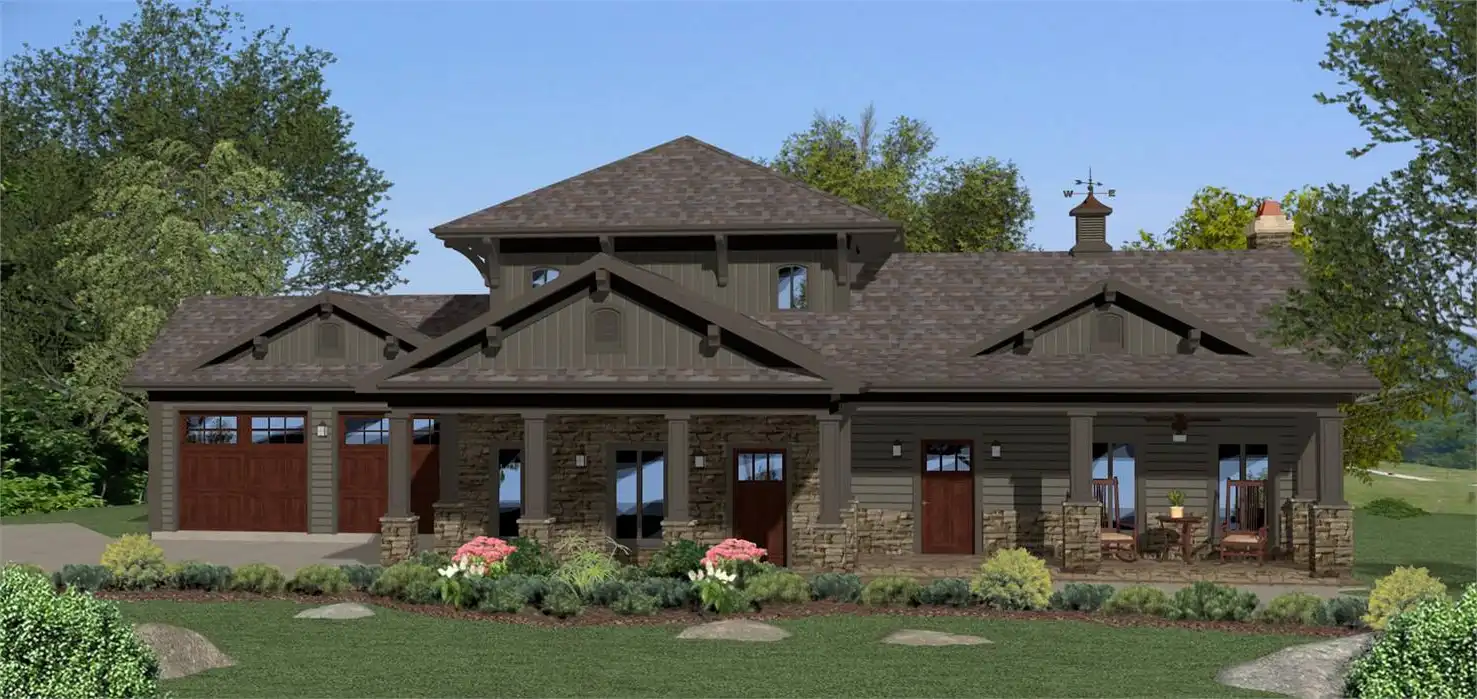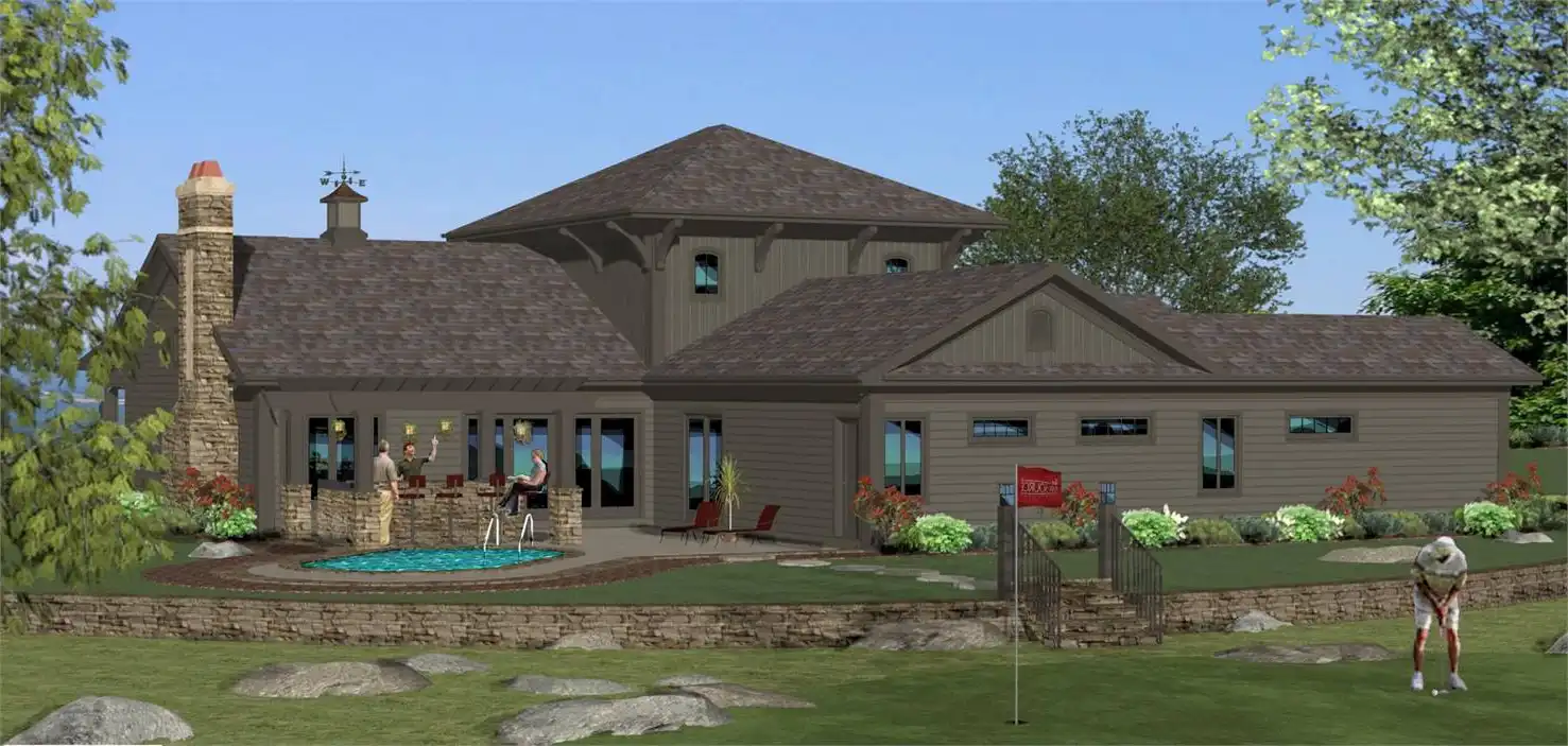 Craftsman, with many luxurious upgrades. Standing 2 stories tall and offering 2,689 square feet, this home is can host a large family and guests at the same time while still maintaining its space and privacy. With a 3-car garage, this 4 bedroom 4.5 bathroom home knows just how to amaze from start to finish. A front single car garage offers beautiful front facing windows and a covered porch, the perfect place to showcase a prized car or have a private workshop. A secondary covered porch sits over the entryway, shielding the home from the elements and allowing for outdoor enjoyment. The front door enters in to the grand foyer and provides immediate access to a home office that can double as a guest suite thanks to its attached private bathroom. The open layout of the home then gives way to a beautiful family room with a double fireplace, as well as a formal dining room and gourmet kitchen with a breakfast nook. A powder room is situated nearby to accommodate guests, while double doors off of the family room open to the expansive outdoor entertainment area. With space and plans for a pergola and bar/grill area, as well as a terraced sitting area and a large pool, this plan is the entertainer’s dream. A full pool bathroom that is accessible from the outdoor area makes getting clean before dinner quick and convenient. The master suite looks on to the outdoor area and is a true gem by itself. A large bedroom is opened by French doors and features a reading area and his and hers walk-in closets and a dressing room. Additionally, this manor features separate his and hers master bathrooms for the ultimate touch of privacy and luxury. The second floor of this beautiful home offers the final two bedrooms, each of which has their own private bathrooms and walk-in closets, as well as a laundry chute, making chores quick and easy.