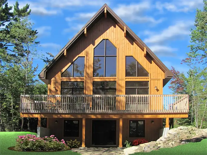 This cabin-inspired, cottage style house plan offers all of the views and natural light that one would expect, but with some added bonuses. This 3 bedroom 2 bath home has 1,301 square feet, offering a large open kitchen and family room with astonishing windows on every wall. The family room opens on to an extremely sizable porch. There is a second floor bedroom as well 2 on the first floor. This home is ready for a day spent enjoying nature and the gorgeous views it entails