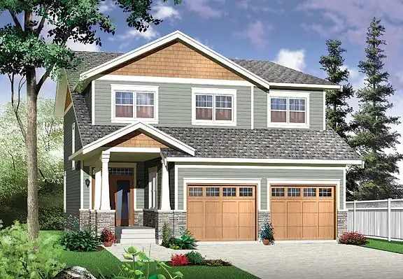 Charming Craftsman style plan offers a traditional appeal, with some custom finishes. A gabled roof and large front columns create a welcoming entryway and an appealing walk up to this home. Beyond the double doors, you will find 2 stories of living space, offering 2,271 square feet, making this home great for a large or growing family. The front foyer gives way to an open concept first floor, home to a large kitchen, dining room, and living room combination, as well as a sliding glass back door for outdoor access. A half bathroom and laundry/work room are near the two-car garage for added functionality. Moving upstairs you will find all 4 bedrooms and 2 full bathrooms that this house includes. The master suite is immediately to the right and features its own private walk-in closet and full bathroom for extra relaxation and solitude. Three more bedrooms and a sitting area share a full bathroom. If one of the bedrooms isn’t needed, consider turning it in to a home office for increased productivity for when you need to get some extra work done outside of the office. A semi-open loft looks down on the foyer below, giving the space an open feeling that is sure to impress.
