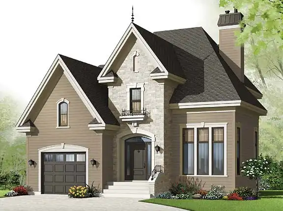Ideal for narrow lots, this three-bedroom home is a mere 39 ft. wide without sacrificing style. A well-balanced and dramatic roofline beckons you for a look inside. An enclosed foyer opens to a dramatic living room, accented by a fireplace and a vaulted ceiling open to the mezzanine above. A spacious kitchen with central island adjoins a bright dining room. Final main-floor amenities include a powder room and a laundry closet. Upstairs, the master bedroom is appointed with a walk-in closet and a private secret space.