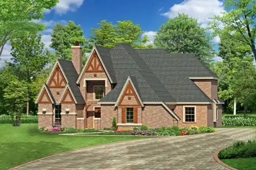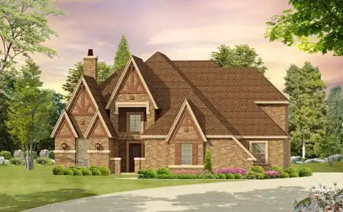 This two-story house plan will impress you with its extra features. Double doors introduce a peaceful study. A corner fireplace warms the family room. A good-sized island enhances the kitchen. Upstairs, spend some time with friends watching a movie in the media room. Then bring out the snacks for a spirited card game. To see the same floor plans with different exteriors, try the Austin Valley and the Austin Grove.