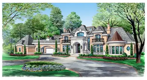 This gorgeous French country mansion offers seven bedrooms and endless amenities. Inside, two curved staircases add drama. The master suite is truly deluxe, with a sitting area, a gym, and even a bar. The living room flows into a bright, curved music area. The island kitchen is a chef's dream, with nearby butlery, pantry, and wine room. The family room introduces a media room, a billiard room and a quiet office. Just steps away lies a fun cabana. Five bedrooms are found upstairs, along with rooms for reading, exercise, games and hobbies.