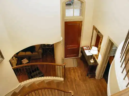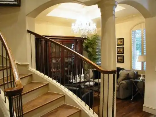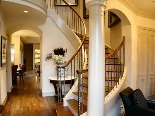 With a pleasant, traditional look, this three-bedroom home plan is designed to fit on virtually any lot. Inside, a dramatic curved staircase impresses visitors. The living room is perfect for quiet conversation. The island kitchen includes a handy pantry and butlery, making the family chef's task easier. A fireplace crackles in the spacious family room, where French doors access a side patio. After a long day, enjoy the peaceful seclusion of the luxurious master suite. The private bath boasts a garden tub and a separate shower.