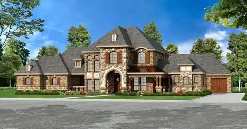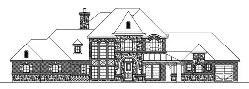 This luxury mansion home plan boasts varied ceiling treatments and two-story ceilings adding volume to your living spaces. Fireplaces and plenty of built-ins are just some of the amenities in this luxury home. The elegant two-story foyer is flanked by the quiet study with access to the lanai and one-car garage and the two-story family room. The gourmet kitchen with free-standing island is centrally located to the bar and dining room, providing ease in serving your family and guests those special dinners. The family room features a warming fireplace, built-ins, and a bank of windows with a generous view of the concept pool. Easy access to the wine room and private patio can be achieved through the family room. The luxurious master suite offers a bed alcove and sitting area with access to the outdoor lounge, wine room and private patio. The master bath boasts his and hers vanities, separate shower, corner garden tub and separate his and hers wardrobes. Beyond the utility room, is a family bedroom with private bath and walk-in closet. The game room offers a bar and mud room for taking off those shoes when entering from the two-car garage. Upstairs, two family bedrooms with walk-in closets and private full baths share space with a reading loft. An overlook and loggia offer stunning views from above to the luxury mansion home below.