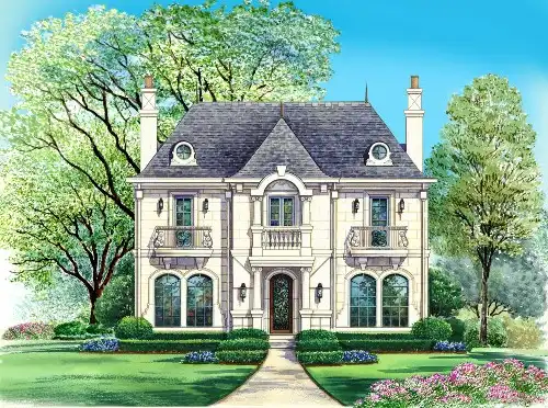 This traditional two-story home plan is both stately and refined, portraying a look of elegance to neighbors and visitors. Inside, the spacious study could serve as a home office. The dining room gives guests the special treatment they deserve. The sprawling family room is large enough for any gathering. The island kitchen is open and inviting. The bright breakfast nook is just steps away from a handy elevator. Upstairs, a media room allows you to view the latest rented movie. Invite friends to play cards in the game room; they'll appreciate a refreshing beverage from the wet bar. The master suite could not be more luxurious; soak your cares away in the garden tub.