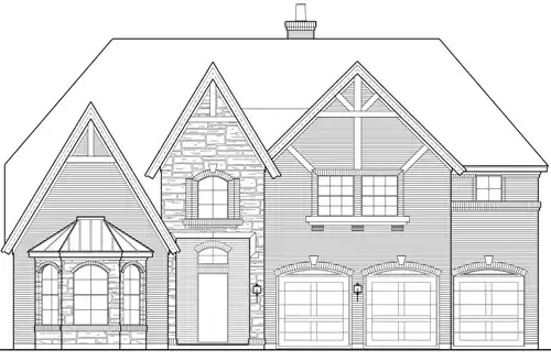 Come home to this lovely luxury house plan and enjoy all the amenities. The large two-story foyer offers access to a quiet study with bayed window sitting area and a family bedroom with walk-in closet and full bath. The family room, dining room, and kitchen are open to one another, divided only by the breakfast bar in the kitchen. Built-ins and a warming fireplace in the family room help to keep this family gathering area cozy. The large bank of windows allow for sun to stream through. The luxurious master suite boasts a bayed window sitting area, trey ceiling, bank of windows, a lavish bath with separate shower, corner garden tub and large wardrobe. A three-car garage completes the main level of this luxury house plan. Upstairs, three family bedrooms with walk-in closets and full baths share space with the game and media rooms. There is plenty of storage in this luxury house plan. See Richmond Ridge and Richmond Valley for alternate elevations.