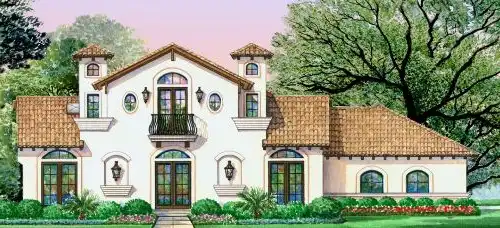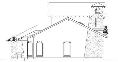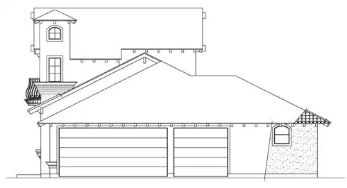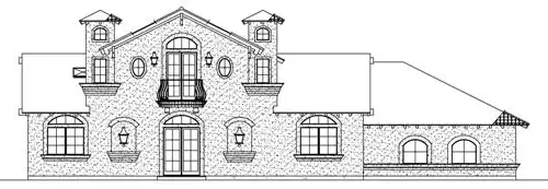 This exotic Mediterranean-inspired house design makes you feel like you've been whisked away to another time. Arches and wrought iron are nice details. The spacious family room will host any event in comfort and style; a fireplace adds ambience. The quiet master suite boasts a bayed sitting area and a posh bath. The island kitchen flaunts a large pantry and a snack bar. A secluded suite behind the garage would be perfect for in-laws or guests. Two additional bedrooms are found on the upper level.