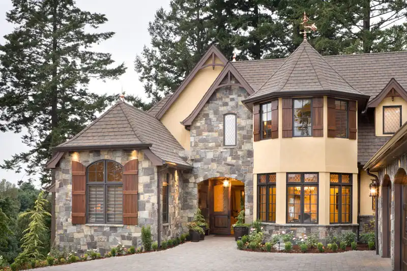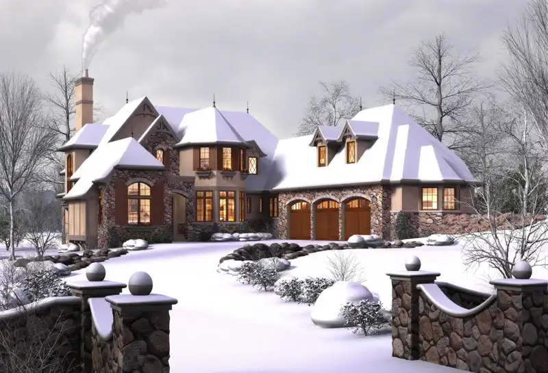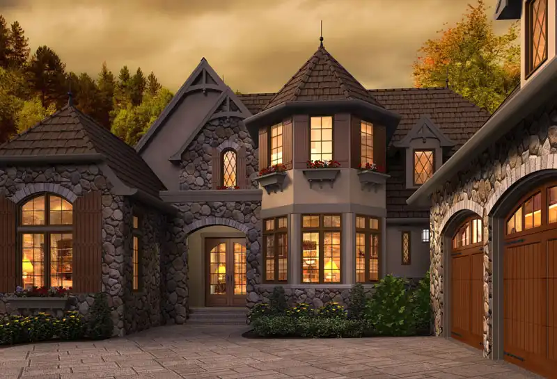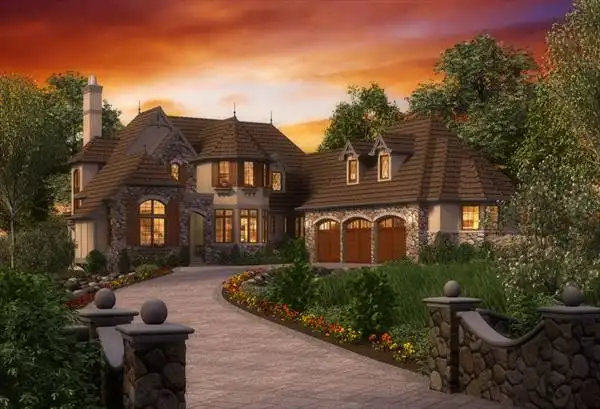 This dreamy European house plan will look great in any neighborhood. The barrel-vaulted foyer directs guests into the vaulted Great room and the outdoor living area beyond. Off the foyer, a piano area leads to a peaceful den. The island kitchen is fantastic, with its menu desk, pantry, and butler's pantry. The bayed dining room gives your dinner guests the tasteful service they deserve. A fireplace enhances the vaulted master bedroom. The skylighted bath boasts a garden tub and a steam shower. Upstairs, a library is a cozy retreat. Two oversized bedrooms enjoy private baths.