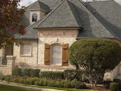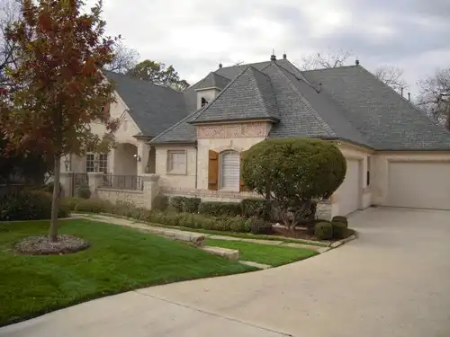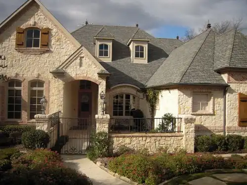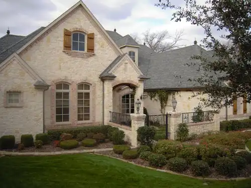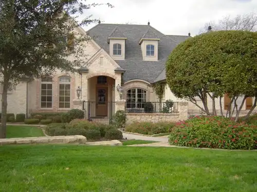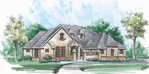 This beautiful stone home design offers European details like shutters, arches and keystones. Beyond a front courtyard, the foyer leads directly to the central family room with fireplace. The island kitchen includes a handy pantry. A second fireplace enhances the deluxe master bedroom. The private bath is virtually unparalleled. Three more bedrooms are scattered around the main floor for privacy. A media room and a study are nice extras. The upper floor would be great for guests or a boomerang child. A sizable game room leads to a bedroom and a full bath.