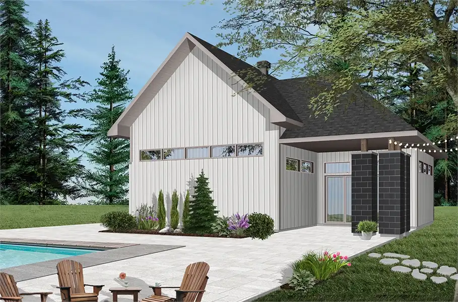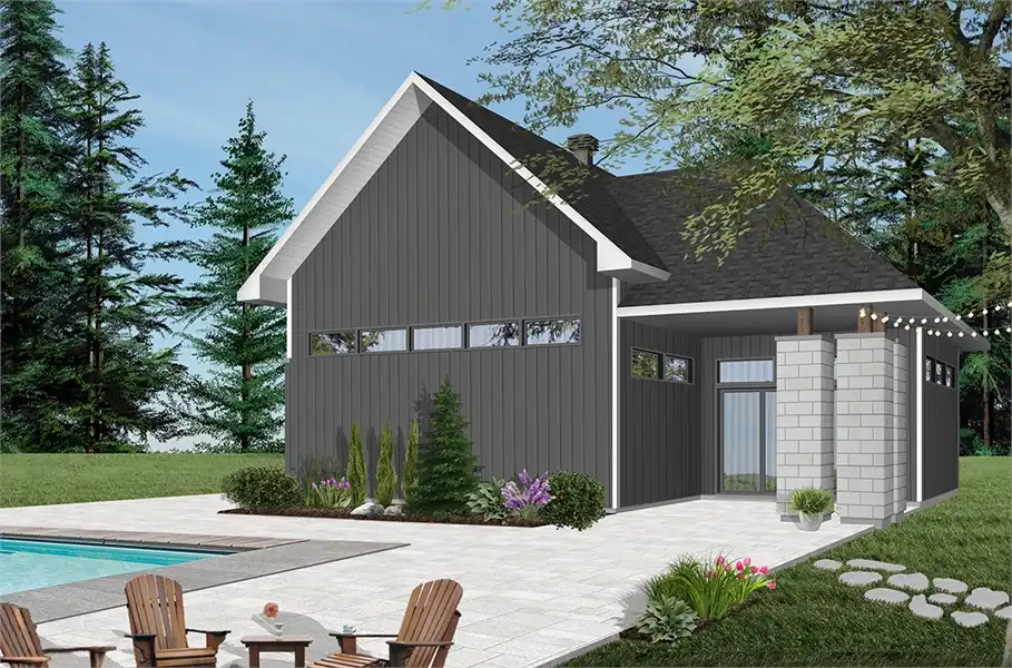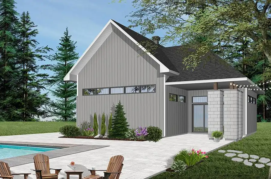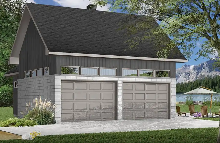 This 2-car garage offers a traditional style. With the flexible design, it allows for a game room (pool table, tiki bar or else) and a workshop. Ideal if you want to build a garage in your backyard near the pool to enjoy long summer days.