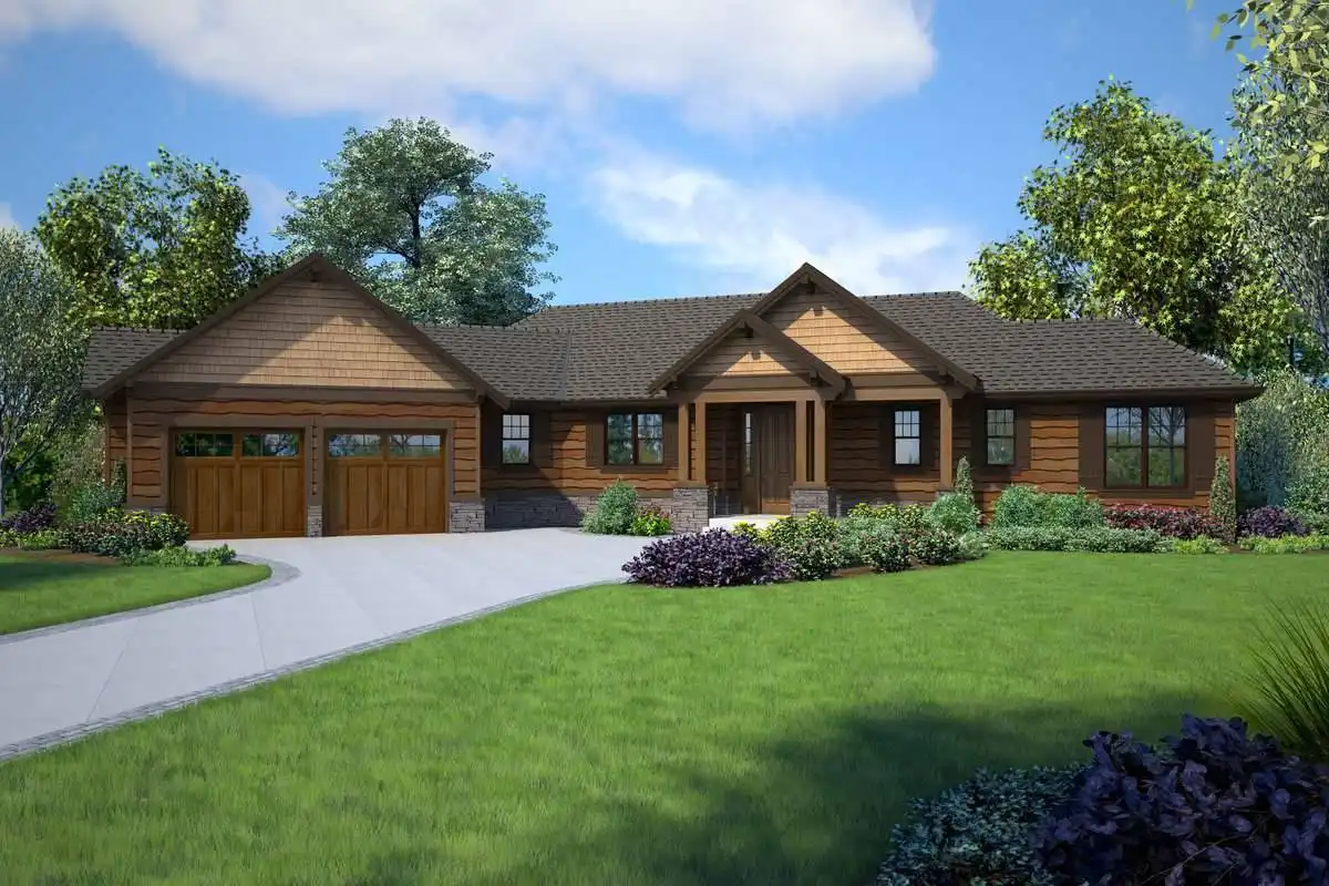 A rustic mountain feeling is present throughout this gorgeous Craftsman plan. 2,946 square feet span a main level and a walkout basement level, providing you with 4 large bedrooms and tons of enjoyable spaces. This includes the first level master suite with its spa bath and large closet storage. Also on the main level is your entertainment-ready kitchen, along with the nearby dining nook and great room. 2 more bedrooms are also on this floor, while the final bedroom takes the form of a private guest suite in the basement, right off of the game room and flex space.