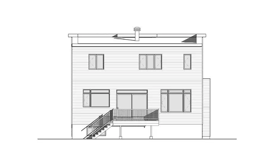 This new modern house design with 4 to 5 bedrooms, including 2 master suites. From the outside you will be charmed by the amount of windows in front, allowing natural light to pass through the strategic rooms. This house plan will appeal to you with its modern look proposing wood in front, thus bringing a rustic touch to its structure which offers nearly 2,467 square feet of living space. Everything to satisfy the large or blended families!