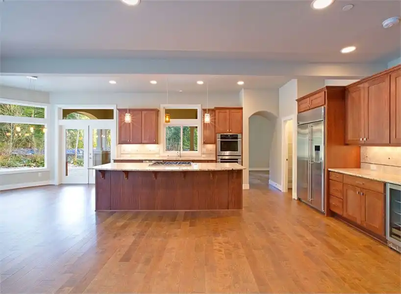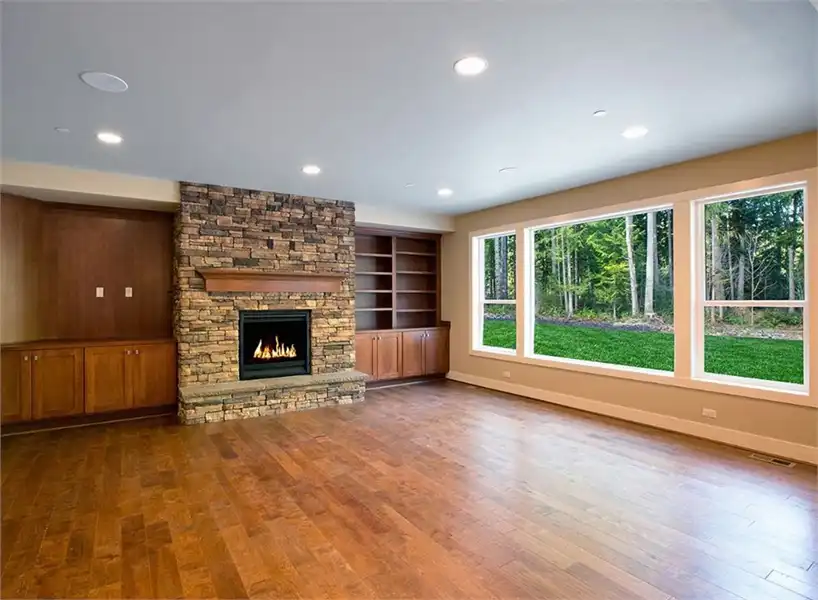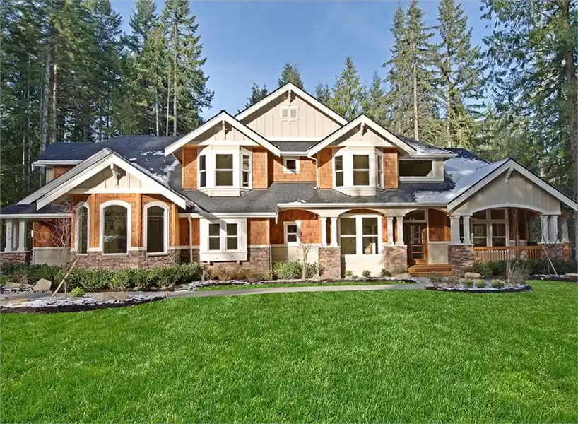 A wraparound porch lends a magical touch to this four-bedroom home design. Inside, a quiet den would make a great home office. Show your visitors to the living room for relaxed conversation in front of the fireplace. The island kitchen serves any meal with ease. A second fireplace enhances the oversized family room. A third fireplace adds ambience to the master bedroom, with its gorgeous sitting area. The well-appointed bath is a thing of beauty. Three additional bedrooms are found upstairs. A sizable bonus room would make a nice art studio.
