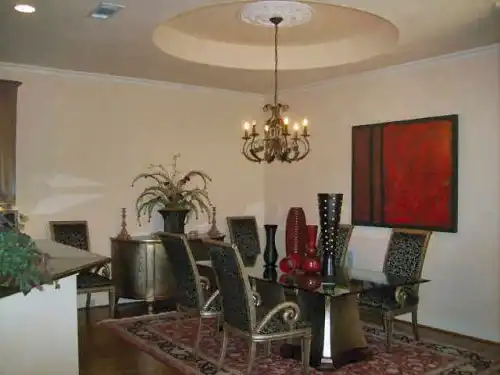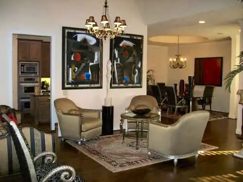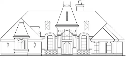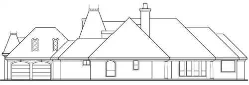 The Foyer of this elegant house plan opens into a coffered ceiling family room, the center of this home plan. The elegant dining room is off the kitchen and breakfast nook, making serving so convenient. The first floor master suite is private and isolated from the other bedrooms, making it a retreat for the home owner. The master bath offers his and her vanities, luxurious tub and vaulted ceiling, as well as a large wardrobe. Two more bedrooms have private closets and baths. The card and game room offer a wine room and bar. Enjoy the courtyard fountain, verandas and patio areas outdoors.