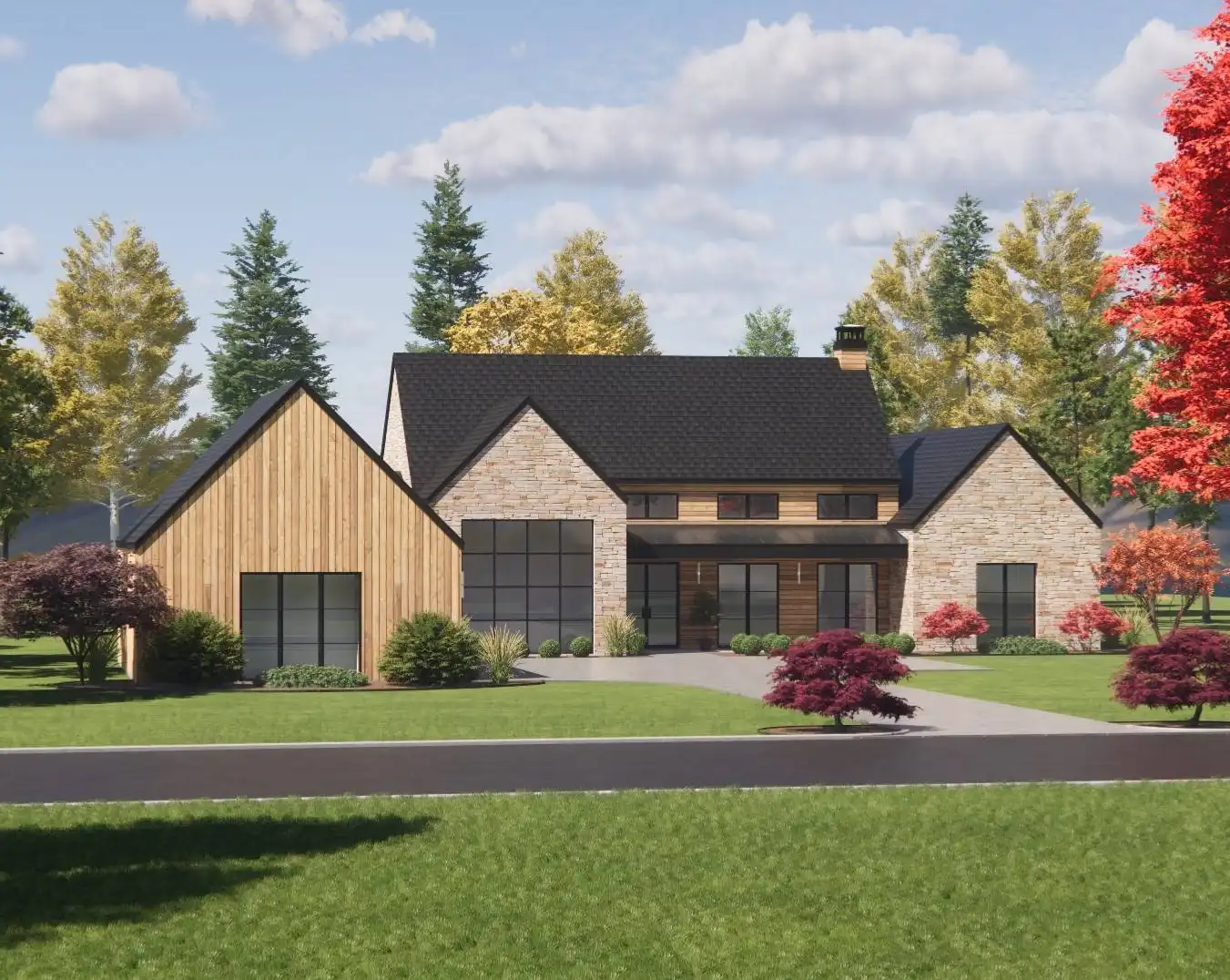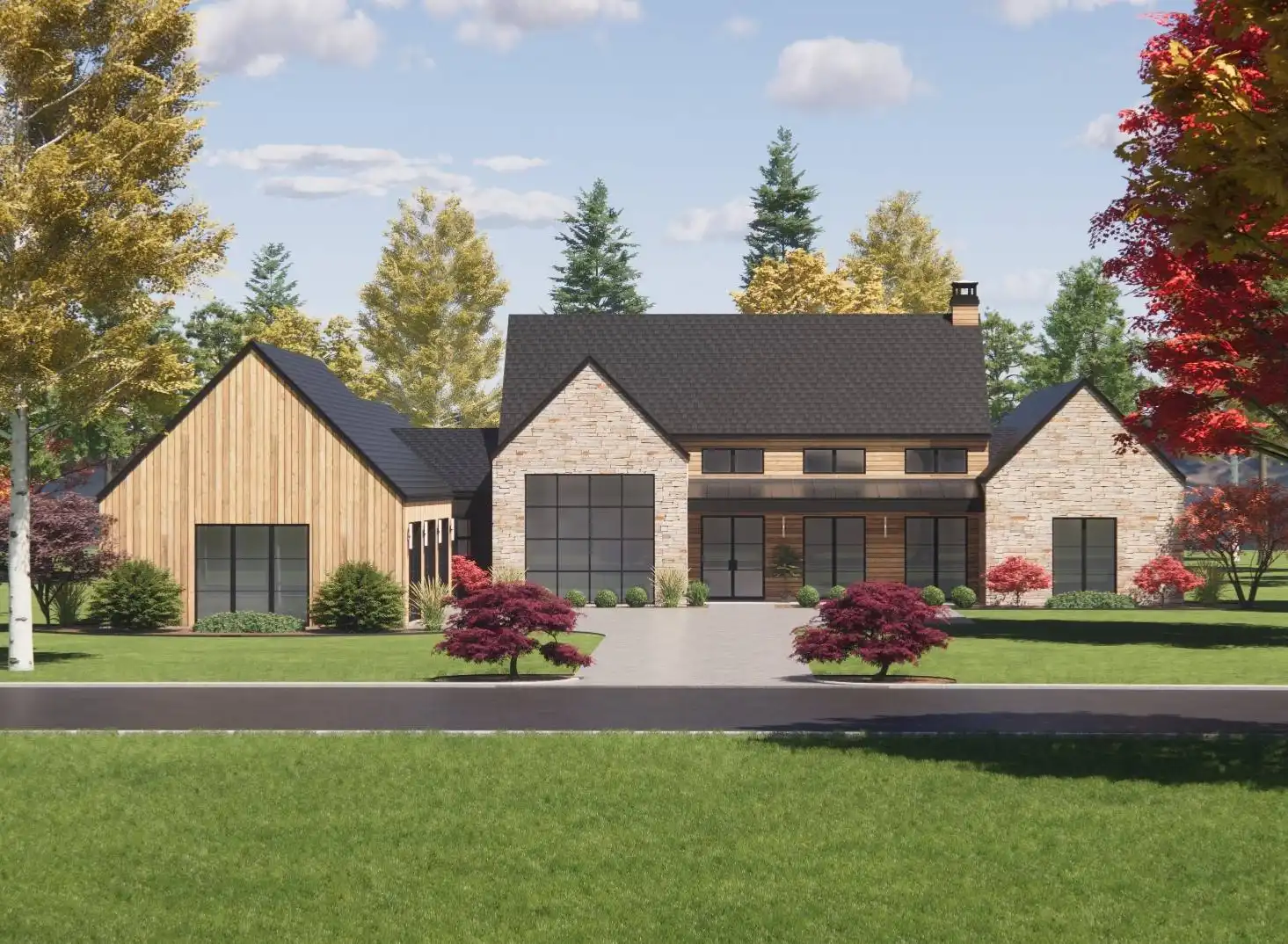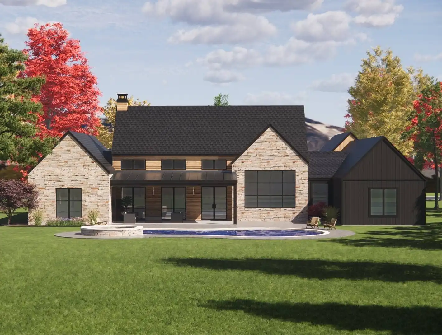 Introducing House Plan 4985, a Scandinavian-style home that seamlessly combines modern elegance with timeless charm. The facade boasts a stunning fusion of wood and stone, accentuated by sleek windows that enhance its curb appeal. Inside, you'll find a thoughtfully designed open floor plan that creates bright, airy interior spaces. The split bedroom layout ensures optimal privacy for everyone, making House Plan 4985 perfect for those who appreciate both style and functionality.