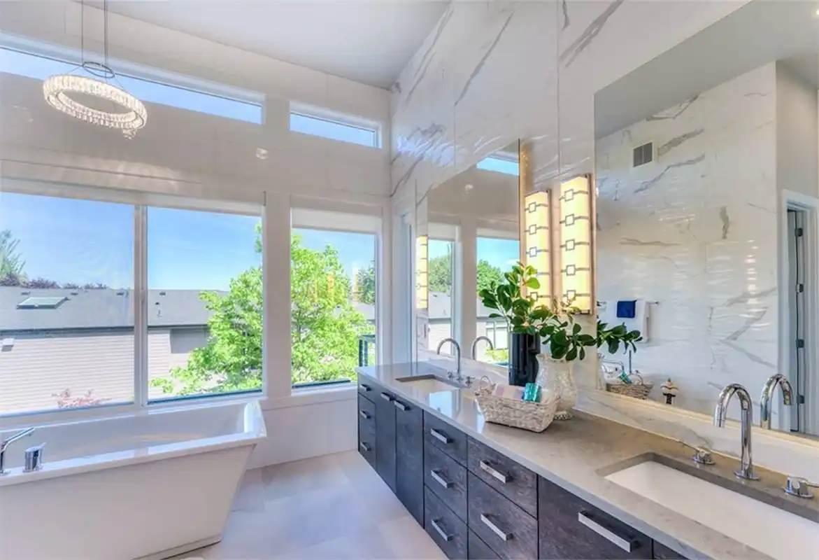 Get ready to fall in love with this modern 5,667 square foot estate! It offers two stories, five bedrooms, five bathrooms, and one-half bath. Welcome and enjoy the natural light that beams through due to the large windows that surround this stunning home. The main level has a spacious island kitchen with seating for four, along with a dining room, great room, and a covered patio with an outdoor dining option. Upstairs you'll find all of the other bedrooms, including the master suite, complete with a luxury bath and a spacious walk-in closet. This plan is unique and efficient for the large modern family.