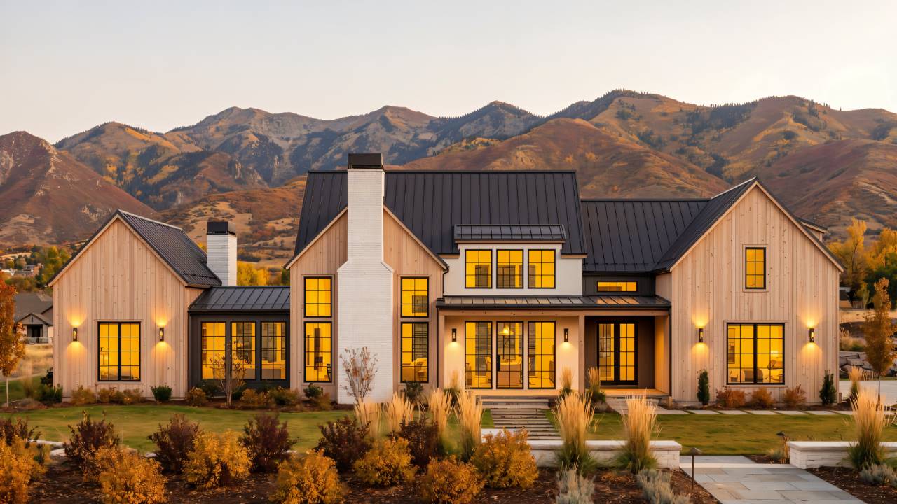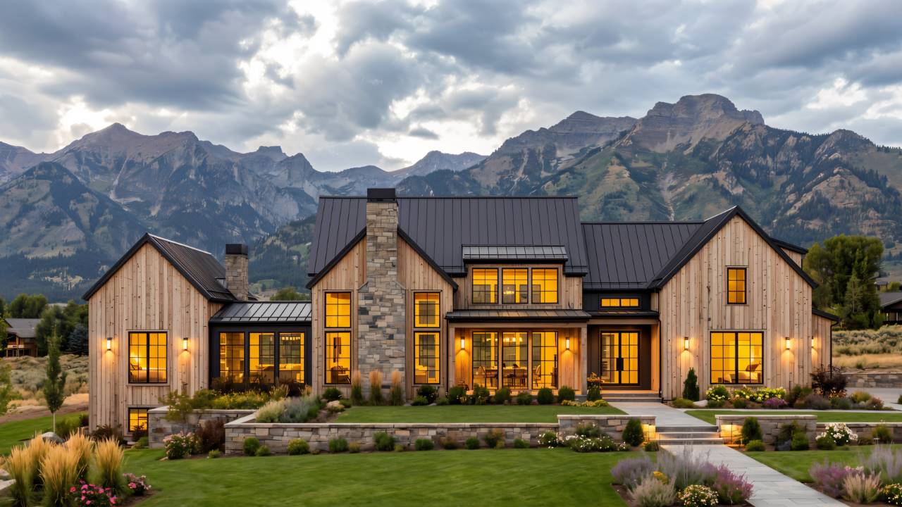 House Plan 5078 is an amazing luxury design with tons of rustic-yet-contemporary Scandinavian style! It offers 4,358 square feet, four bedrooms, four-and-a-half bathrooms, and so much more behind its unique modern farmhouse exterior. The main level includes a cathedral great room with trusses, a U-shaped island kitchen with a beamed ceiling, a large and practical mudroom coming in from the four-car garage, a super bright office, access to a courtyard for outdoor space, and a luxurious primary bedroom suite with a vaulted ceiling, five-piece bath, and a large walk-in closet. Head up the floating staircase in the entry hall to find three more smaller bedroom suites for the kids or guests, as well as a game room and loft space!