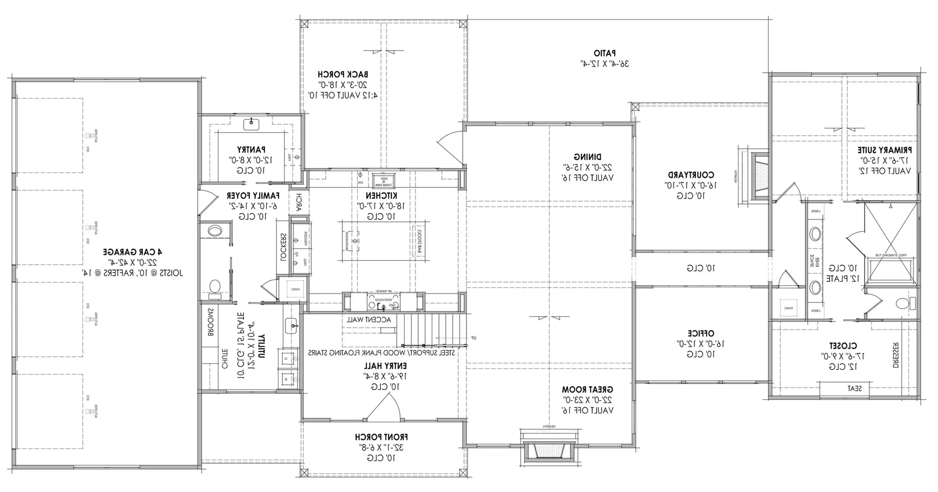 House Plan 5078 is an amazing luxury design with tons of rustic-yet-contemporary Scandinavian style! It offers 4,358 square feet, four bedrooms, four-and-a-half bathrooms, and so much more behind its unique modern farmhouse exterior. The main level includes a cathedral great room with trusses, a U-shaped island kitchen with a beamed ceiling, a large and practical mudroom coming in from the four-car garage, a super bright office, access to a courtyard for outdoor space, and a luxurious primary bedroom suite with a vaulted ceiling, five-piece bath, and a large walk-in closet. Head up the floating staircase in the entry hall to find three more smaller bedroom suites for the kids or guests, as well as a game room and loft space!