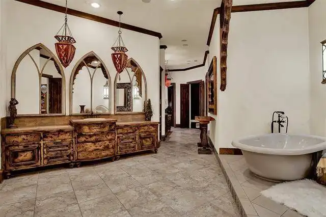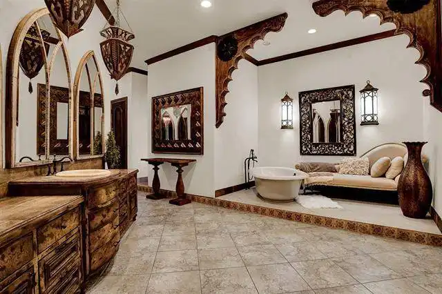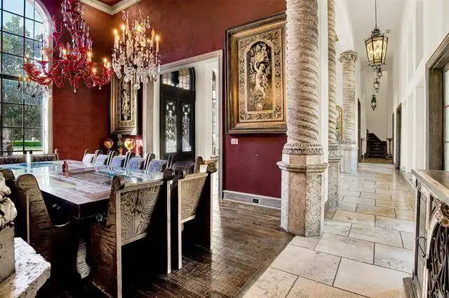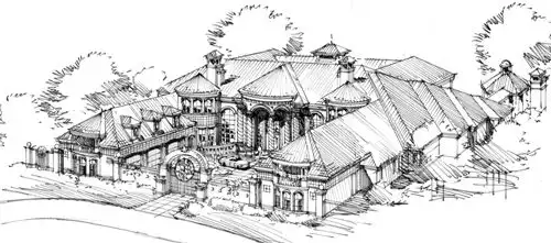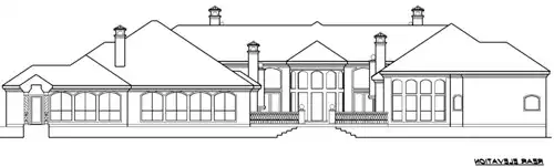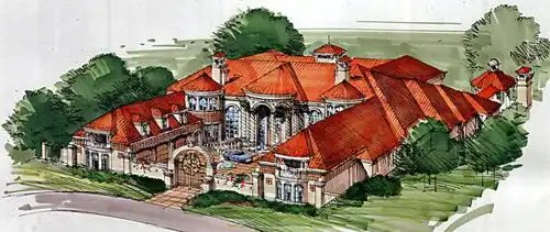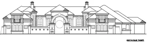 This magnificent Mediterranean luxury mansion house plan is stunning. Balconies, rotundas, large decorative pillars, and varied ceiling treatments will draw you in. When you enter the two-story grand foyer, the view is inspiring. Flanked by the quiet study on the right and on the left is the elegant dining room with butlery for ease in serving. Off the dining room is a lounge with dome ceiling and wine room, while off the study is a circular office. A guest suite offers a walk-in closet and full bath, and sits adjacent to the utility room. The veranda sit off the dining room and study. Beyond the grand foyer is the bayed window music room with views and access to the courtyard. The family room provides two two-way fireplaces; one with the courtyard and one with the game room. The gourmet kitchen provides a free-standing island for additional counter space, with a breakfast bar that can be shared with the family room. A game room with built-in bar and full bath sits quietly behind the family room. A family bedroom across from the guest suite offers a walk-in closet and full bath. The luxurious master suite boasts a bayed window, trey ceiling, warming fireplace, courtyard access, grand master bath with his and hers vanities, separate shower, whirlpool, and large wardrobe with built-ins, cedar closet, exercise room, storage and a utility room. Upstairs, a family bedroom with built-in desk, walk-in closet, full bath and private balcony, shares space with the bonus room with sitting area and private balcony. This completes this luxury mansion house plan.