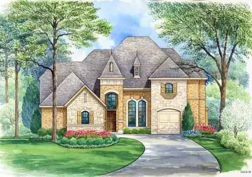 This luxury house plan offers varied ceiling treatments and plenty of large decorative pillars throughout that define room perimeters. Two garages, a one-car and a two-car sit at the front of this house plan. Off the entry is the elegant dining with direct access to the butlery and pantry for ease in serving. The family gathering area is made up of the family room with built-ins, warming fireplace, trey ceiling, bar, patio access and large bank of windows to allow the sun to stream through. The breakfast and kitchen area are separated only by the free-standing island. A warming fireplace in the breakfast area will warm the kitchen as well. The large master suite boasts a trey ceiling, lavish master bath with his and hers vanities, separate shower, center garden tub, and large wardrobe. A quiet study with built-ins is tucked away at the front of this house plan. Upstairs, three family bedrooms with walk-in closets and two full baths share space with the media, game, bonus rooms, and balcony, completing this luxury house plan.