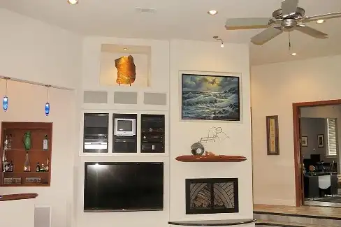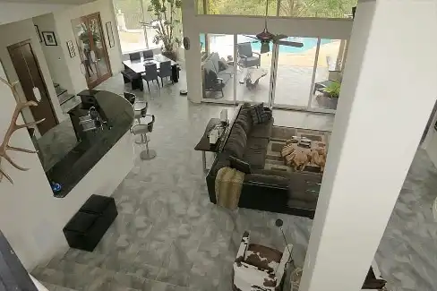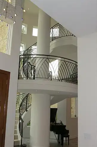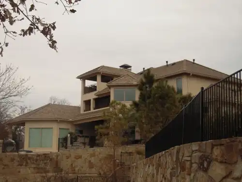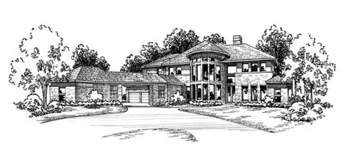 This Mediterranean luxury mansion is stunning. The elegant foyer's spiral staircase makes for the rotunda-tower look to the exterior of this luxury mansion house plan. A quiet study with built-in desk and access to the master suite sits in the front corner of this home. The luxurious master suite boasts a private patio, trey ceiling, large master bath with his and hers vanities, separate shower, whirlpool, and a large wardrobe. The family room, dining room and kitchen are separated from one another only by the breakfast bar in the kitchen. A free-standing island provides extra counter space. The pantry and kitchen provide ease in serving those family dinners. Access to the patio with fireplace and (concept) pool can be achieved from the family room. Two garages, a two-car and a one-car garage sit on either side of the motor court. An exercise area facing the lush landscape out back completes the main level of this house plan. Upstairs, three family bedrooms with walk-in closets and full baths share space with a game room with built-ins, balcony access and a media room. A second balcony and viewing room complete this Mediterranean luxury mansion house plan.