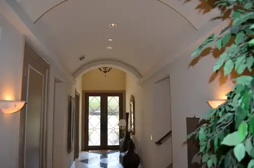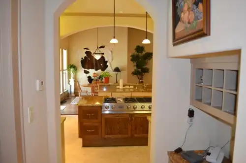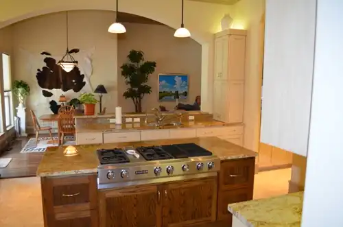 This luxury home plan offers an elegant view from the foyer with its 22' high ceilings. The quiet study has a coffered ceiling, built-ins and plenty of windows that let the sun through. The gallery is set off by large decorative pillars into the formal dining room that shows off its trey ceiling. The family room has access to two patios, built-ins and a warming fireplace that can be felt in the open breakfast area and kitchen. The kitchen boasts a bar in the butlery, pantry, free-standing island cook top and a breakfast bar. Enjoy your morning coffee on the patio outside the breakfast area The romantic master suite has a sitting area with fireplace, trey ceilings and double doors to the large master bath. The relaxing garden tub shares space with a separate shower, his and hers vanities and a large walk-in wardrobe. The second story of this luxury home plan offers to family bedrooms with walk-in closets and full baths, a loft from which to enjoy the two-story view to the main level and the large bonus room. Built-ins and trey ceilings add flair to this level.
