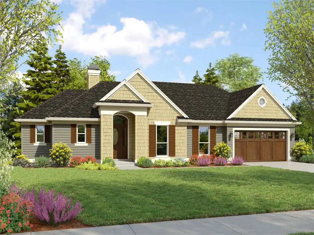 This lovely ranch design offers four bedrooms, two of which are on the walk-out basement level. Off the foyer, a cozy den would make a nice home office. The open kitchen, dining area and great room flow together for easy entertaining. The posh master suite is a peaceful haven after a busy day. Two bedrooms on the lower level would be perfect for teenagers or boomerang children.