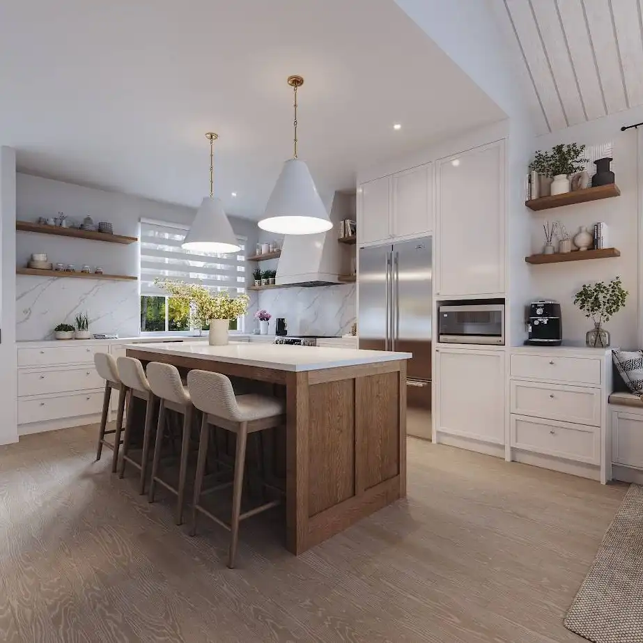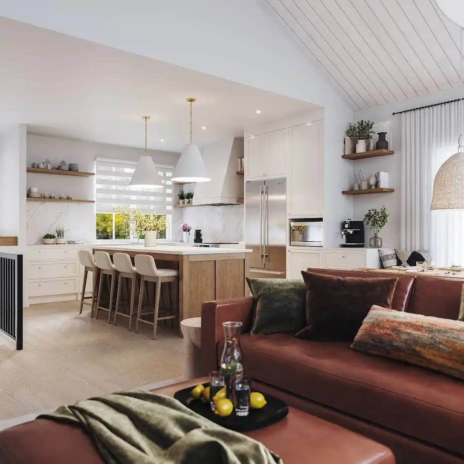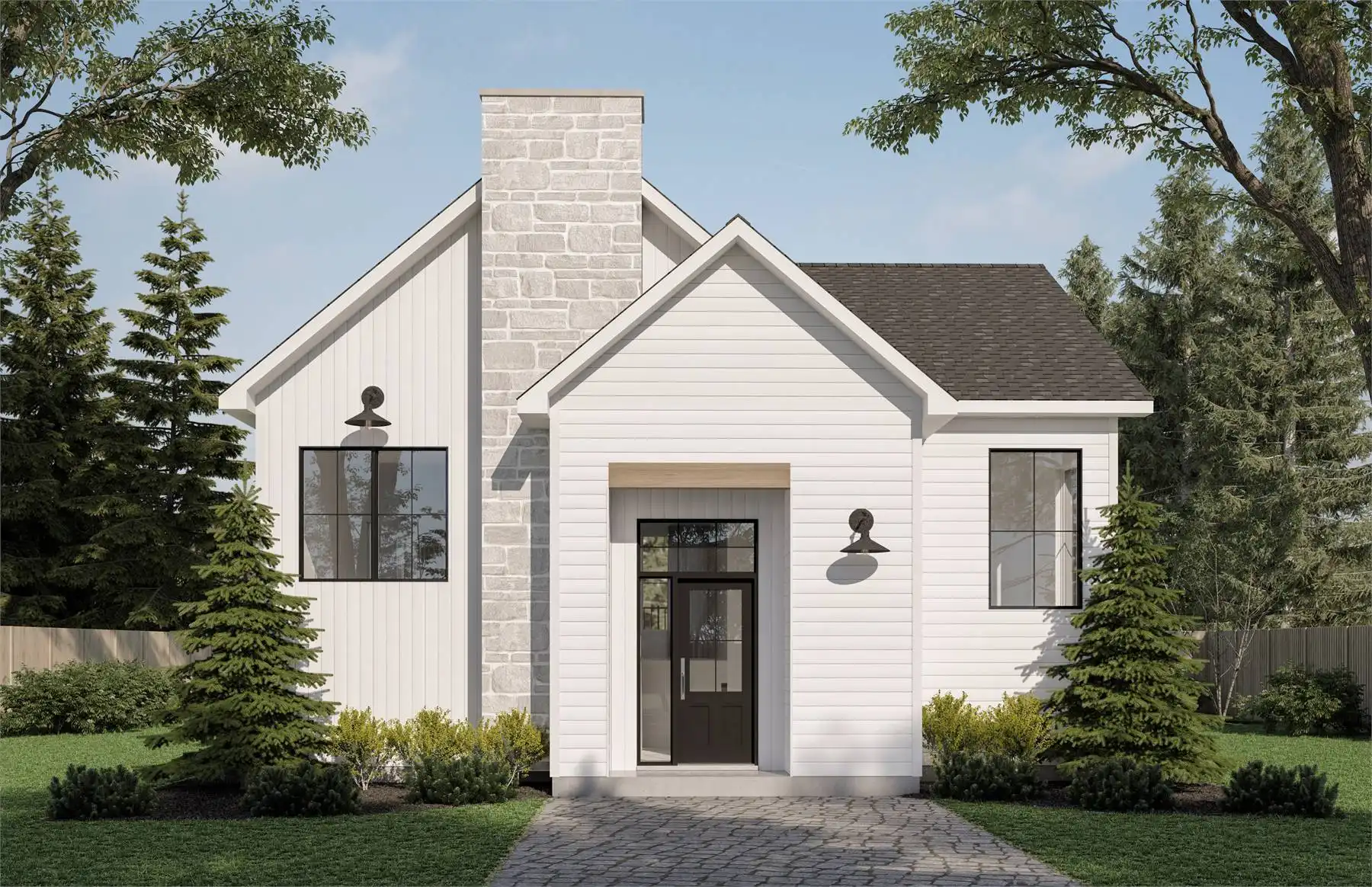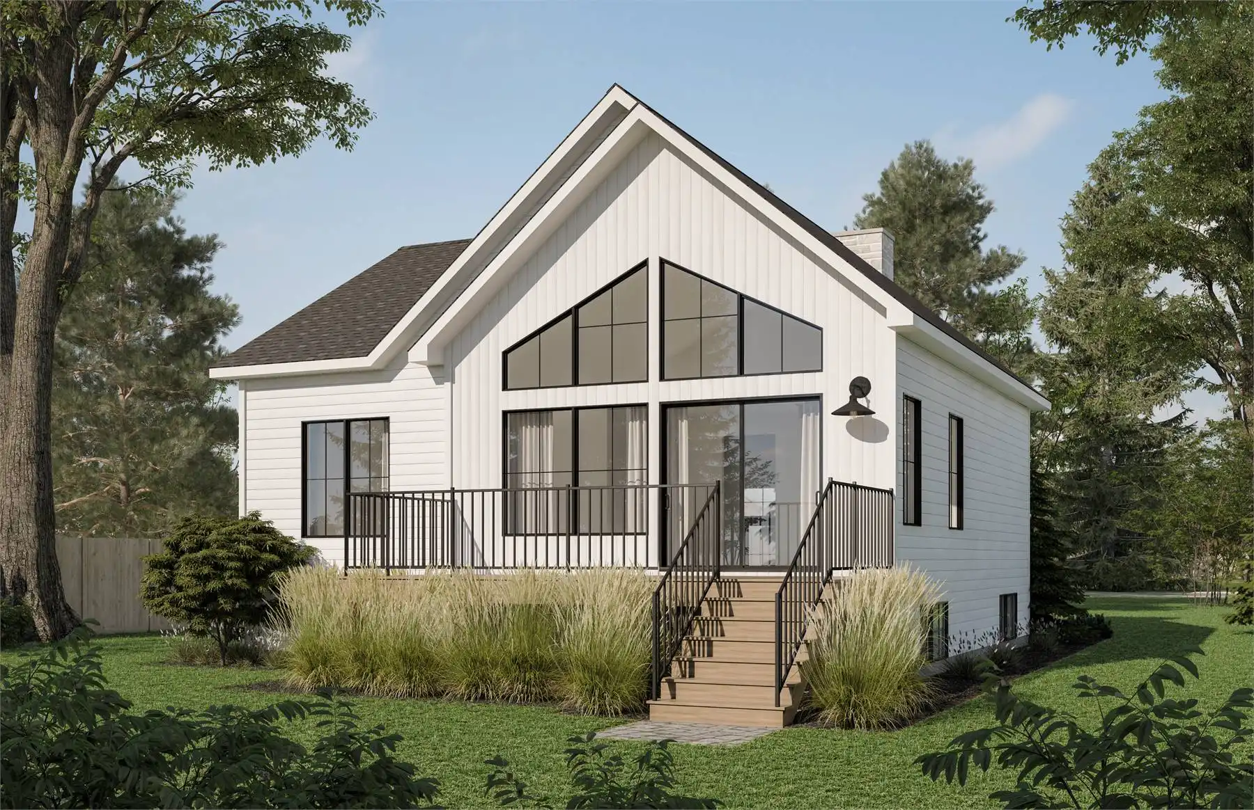 With its bi-level layout and square footprint, House Plan 5207 makes a wonderful choice for building on a budget! You'll find 1,970 square feet behind that chic transitional facade. Step up to the main level, complete with an island kitchen, built-in dinette, vaulted living, a spacious primary bedroom, and a five-piece bath. Step down to find the other two bedrooms, a hall bath, the family room, and the laundry. This thoughtful design offers awesome living potential in a compact package!
