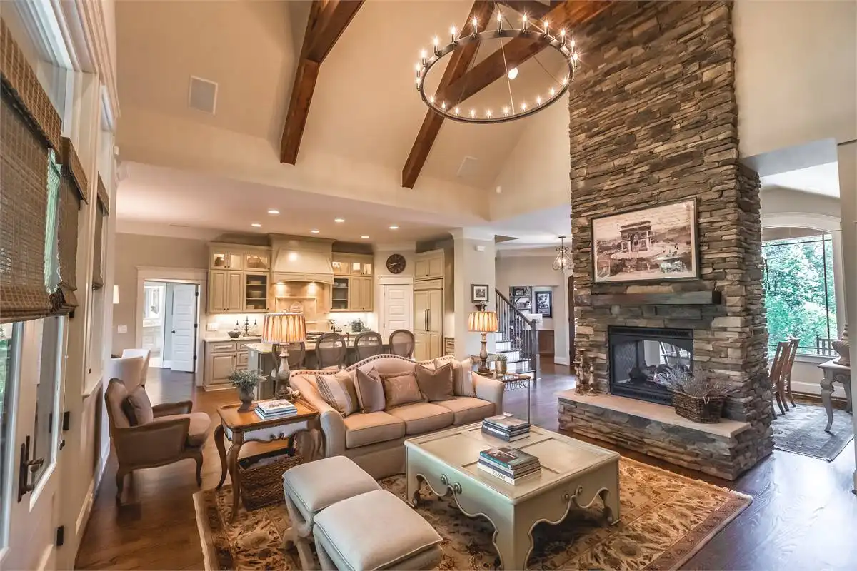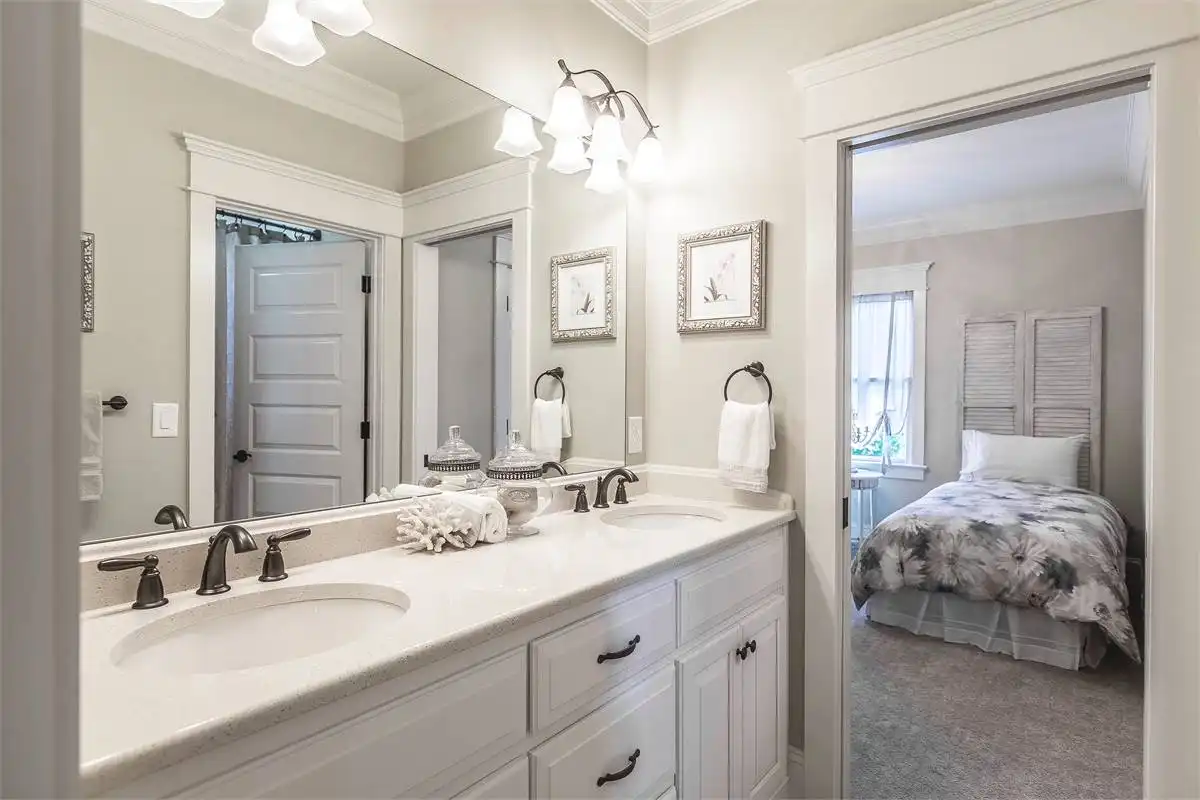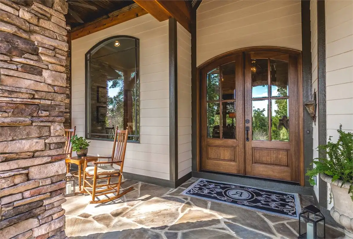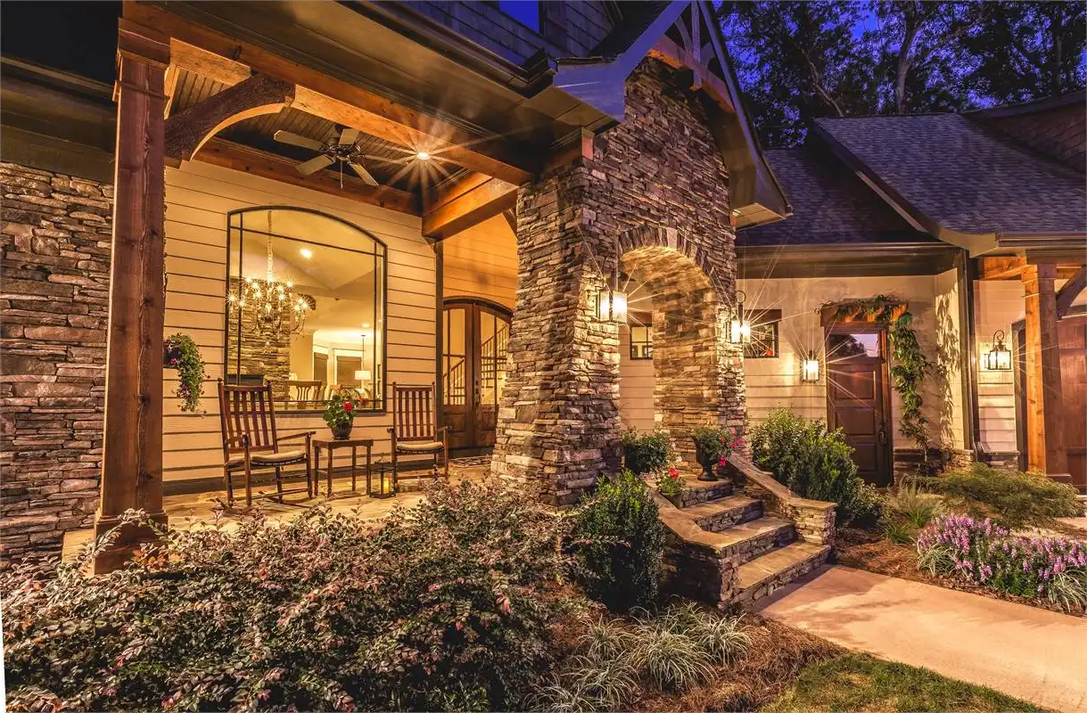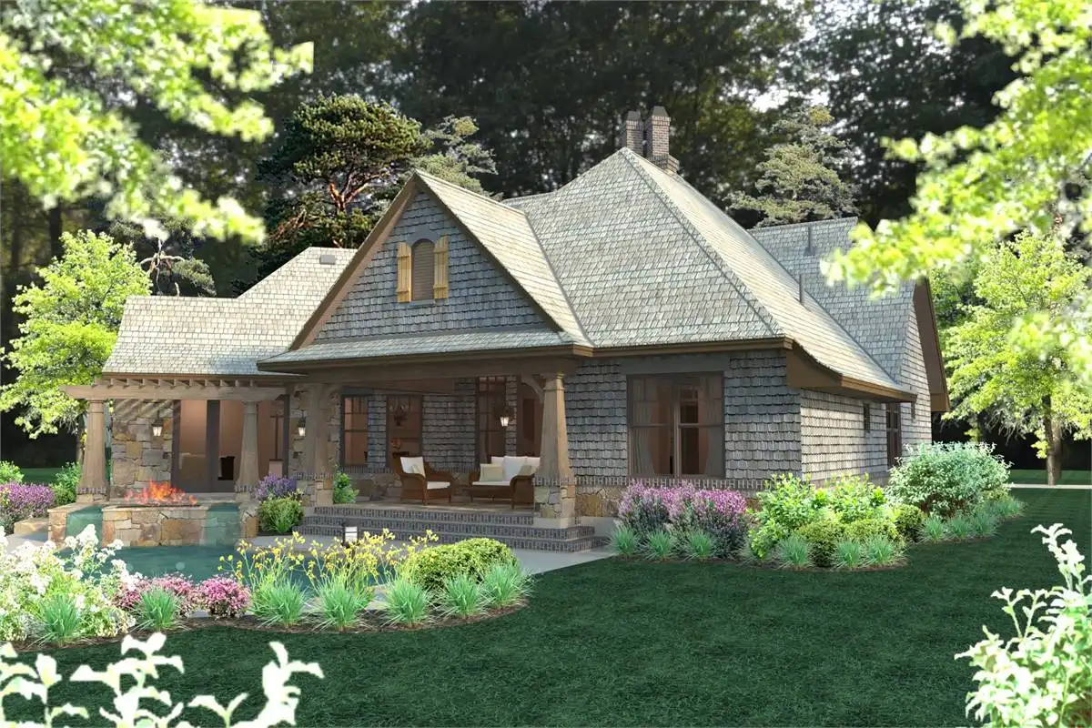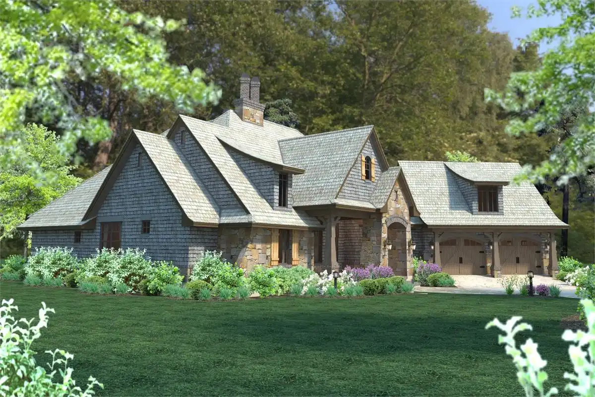 Shutters and stone accents lend a French country appeal to this house plan, with four bedrooms, 3.5 baths, 2,482 square feet and an additional 473 square feet in the bonus room. Visitors will love the inviting front porch of this home plan, as you welcome them and show them to the vaulted family room. A two-way fireplace is shared with the vaulted dining room. The island kitchen shows off a bright nook and a corner pantry. Beyond double doors, a cathedral ceiling presides over the secluded master suite. Note the suggested trellis and hot tub in the backyard. In the private bath, you'll find a sun-drenched tub, a separate shower and a dual-sink vanity. Don't overlook the fabulous walk-in closet, which could open directly to laundry facilities. Three secondary bedrooms boast convenient bath access. Our customers love the rear lanai, and the quiet study or home office in this home design. Above the two-car garage, the bonus room would make a nice playroom for the kids.