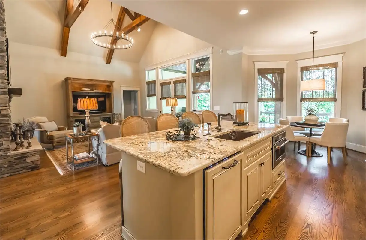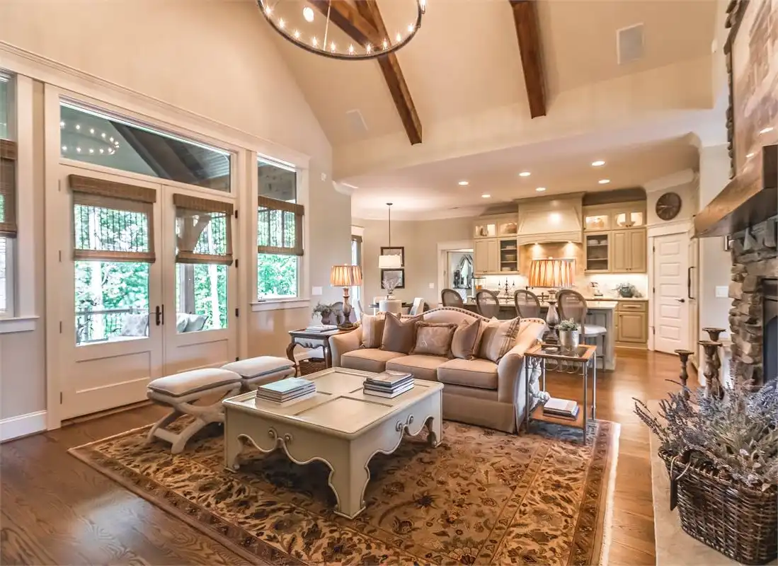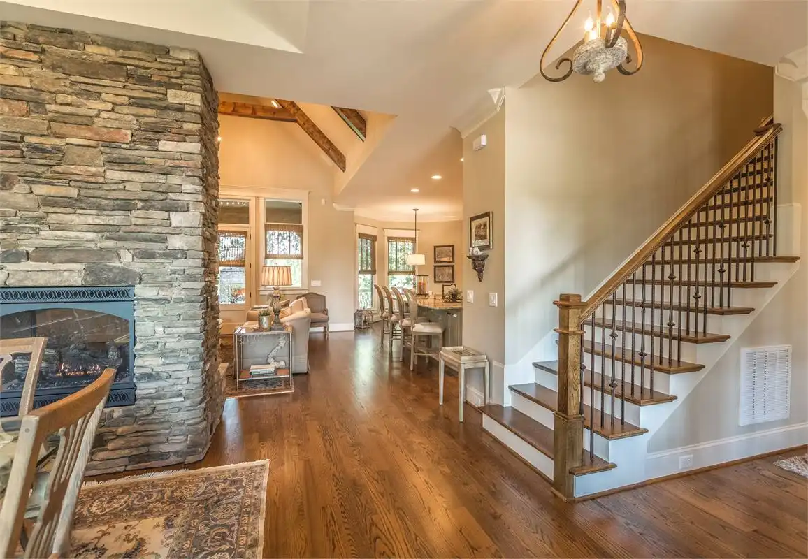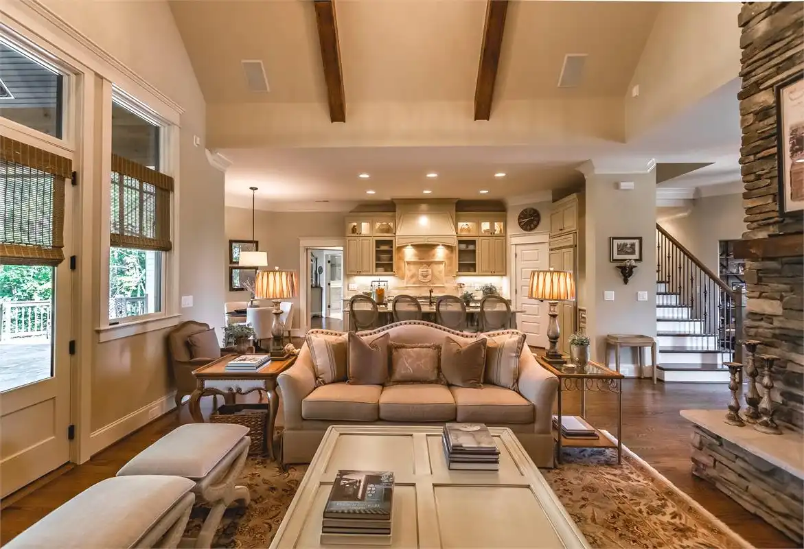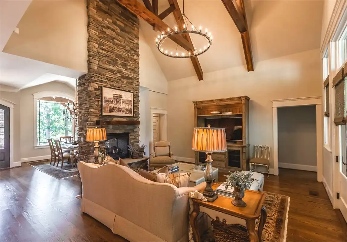 Shutters and stone accents lend a French country appeal to this house plan, with four bedrooms, 3.5 baths, 2,482 square feet and an additional 473 square feet in the bonus room. Visitors will love the inviting front porch of this home plan, as you welcome them and show them to the vaulted family room. A two-way fireplace is shared with the vaulted dining room. The island kitchen shows off a bright nook and a corner pantry. Beyond double doors, a cathedral ceiling presides over the secluded master suite. Note the suggested trellis and hot tub in the backyard. In the private bath, you'll find a sun-drenched tub, a separate shower and a dual-sink vanity. Don't overlook the fabulous walk-in closet, which could open directly to laundry facilities. Three secondary bedrooms boast convenient bath access. Our customers love the rear lanai, and the quiet study or home office in this home design. Above the two-car garage, the bonus room would make a nice playroom for the kids.