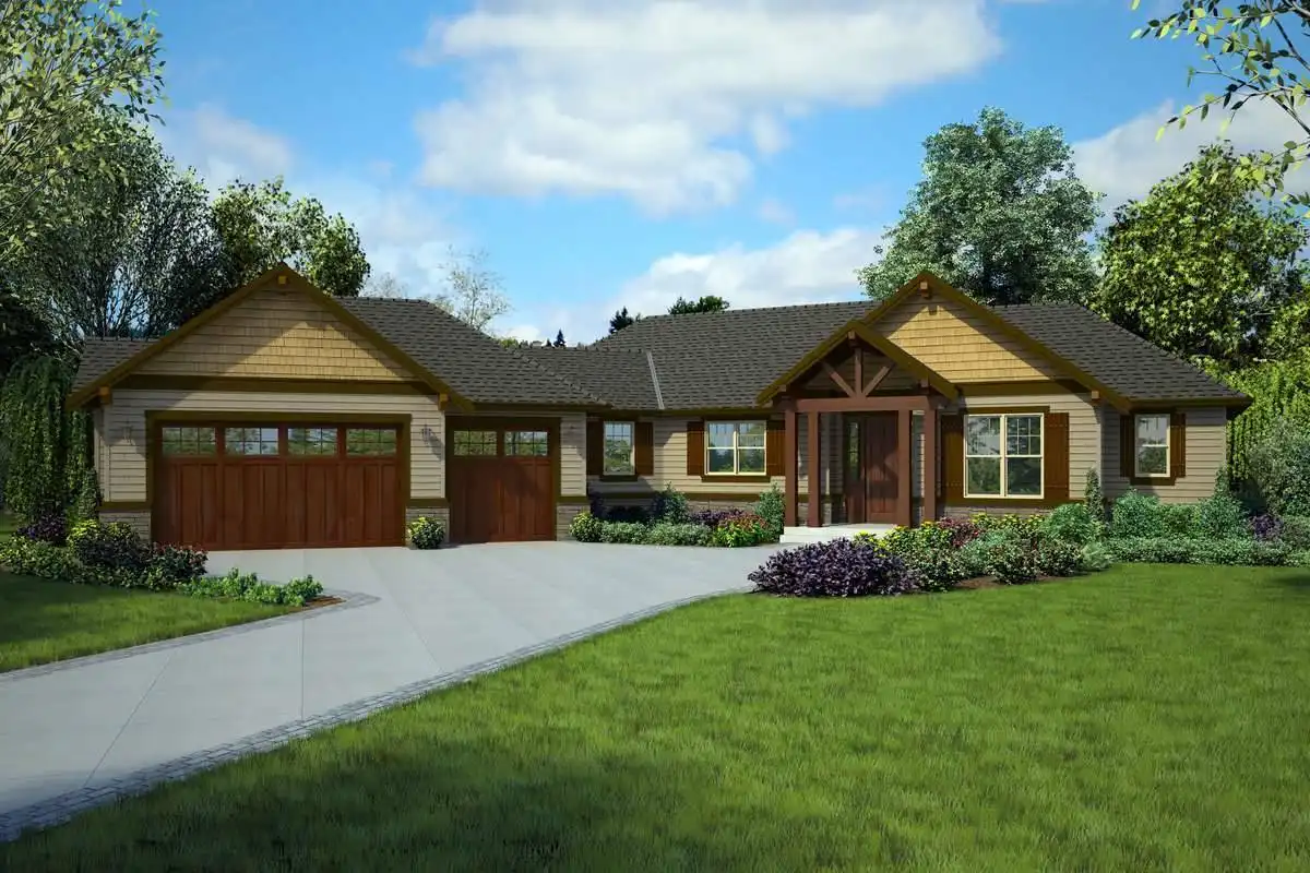 A comfortable home with a big personality, this Craftsman ranch is both accessible and relaxing. The 1,953 square foot layout provides plenty of space, while the 3 bedrooms and large open concept provide plenty of practicality. Past the covered porch and 3-car garage, discover the open concept layout, joining the gourmet island kitchen with the dining room and vaulted great room, along with the nearby covered porch. Past the great room sits the two auxiliary bedrooms, while the master suite is found at the other end of the home, including its large wardrobe space and spacious dual-vanity spa-style bath.