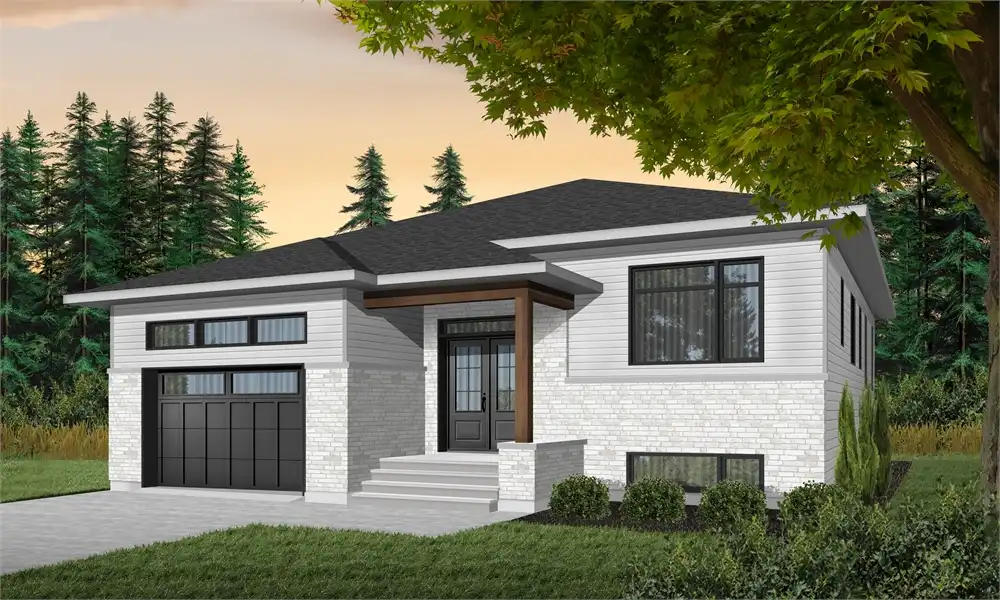 This 1,590 square foot house plan is perfect and affordable. With an adorable covered porch that walks into an split-entry, and coat closet, this house is a great starter home for that first time buyer. This house plan features two secondary bedrooms sharing a full bathroom, laundry room off of the kitchen that has a walk-in pantry, dining and living room with fireplace, and a master bedroom with private shower room and walk-in closet. The one-car garage has enough space for storage and access into the house. An unfinished basement can be finished in the future for that growing family. Many foundation options are available with this plan.