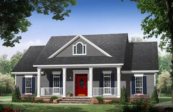 The master suite features a wonderful bathroom with large walk-in closet. The great room has gas logs as well as built-in cabinets and 10' ceilings that make it a great place to relax and spend time with family and friends. The rear covered porch provides a great space for those summer cookouts as well as being within close proximity to the well-equipped kitchen. The two car garage provides easy access to the rear porch and also includes a large storage space. This well-designed plan provides an abundance of amenities for a minimal square footage. Make this your family's next home!