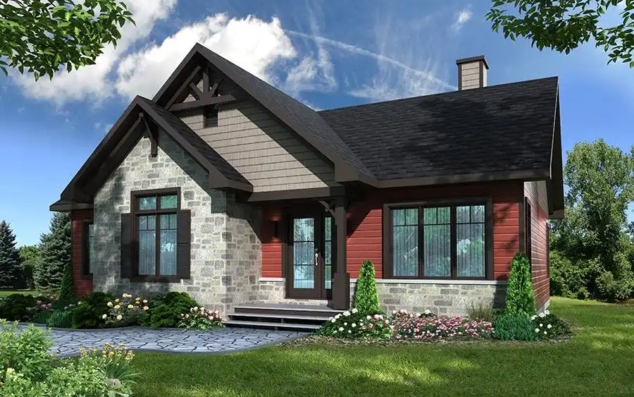 New house plan with modern accents, 3 bedrooms & a two-sided fireplace! The entrance porch offers a wardrobe