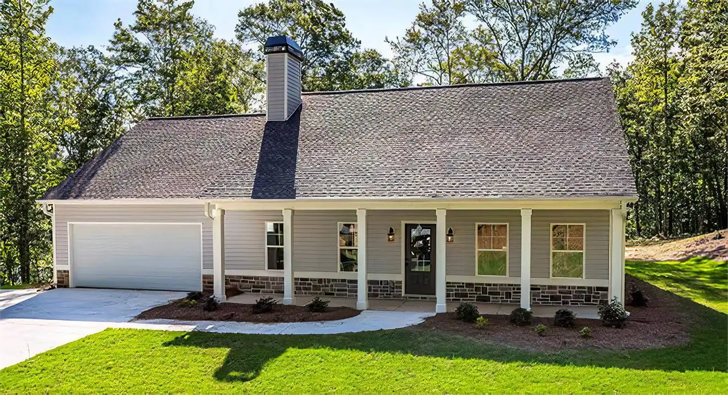 The covered rear porch has a fireplace for outdoor entertainment or relaxing with family. The energy efficient windows featured on our renderings are