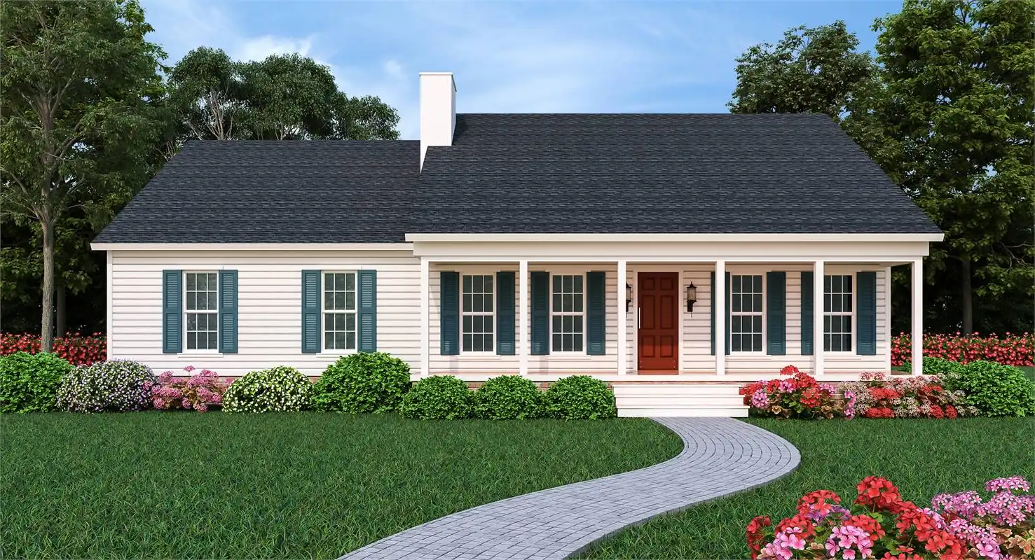 When you approach this cozy southern house plan you will love the wide front porch with column wraps and railing system that are designed by