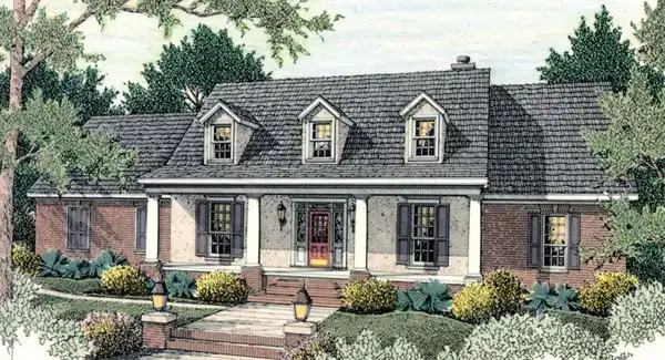Large columns welcome you to the front and rear porches. Just inside, architectural columns define the formal dining room. Between the kitchen and greatroom are additional columns with cabinets built below. This offers additional storage while defining the space between the two rooms. The stair to access the 1494 square feet on the upper floor which could be used for attic space or future expansion is placed out of view.