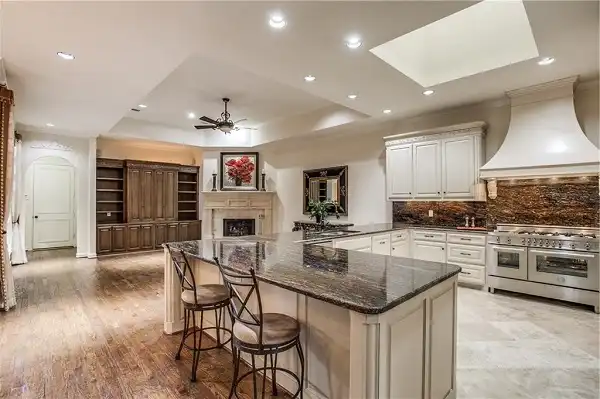 The front of this luxury home plan is the main family living area. A two story foyer is flanked by the quiet study with built-ins and the trey ceiling elegant dining room. The dining room has access to the butlery, pantry and kitchen for ease in serving. The kitchen has a functional free standing island and a breakfast bar. From the breakfast area you can easily go out to the patio to enjoy that early morning coffee or your evening tea. The family room offers a corner fireplace and plenty of built-ins. The master suite boasts a trey ceiling, sitting area, his and hers vanities separate shower and garden tub and a large wardrobe. The second level of this luxury house plan offers a split-bedroom plan, separated by the loft. Both bedrooms have walk-in closets and access to the upstairs full bath. Built-in shelves add to the ambiance of this luxury home plan. The width is 37 feet wide which will accommodate most narrow lots. The 12 foot ceiling create a feeling of size and luxury. This home plan can be easily adapted to zero lot line and duplex building communities. This Texas-inspired luxury house plan is perfect for a narrow, zero lot line.