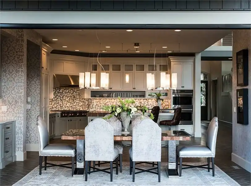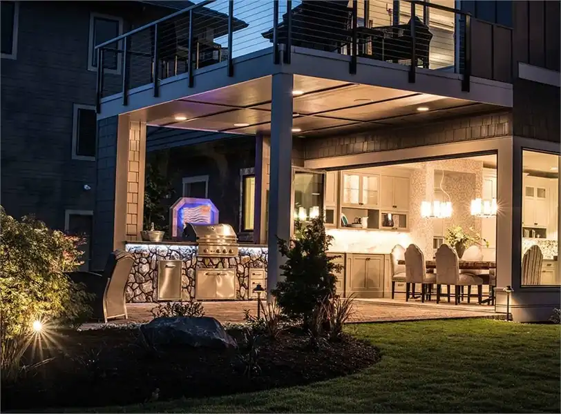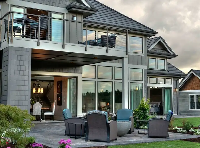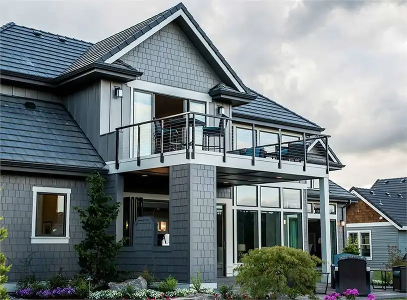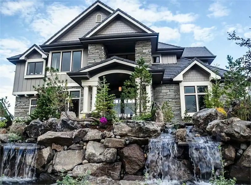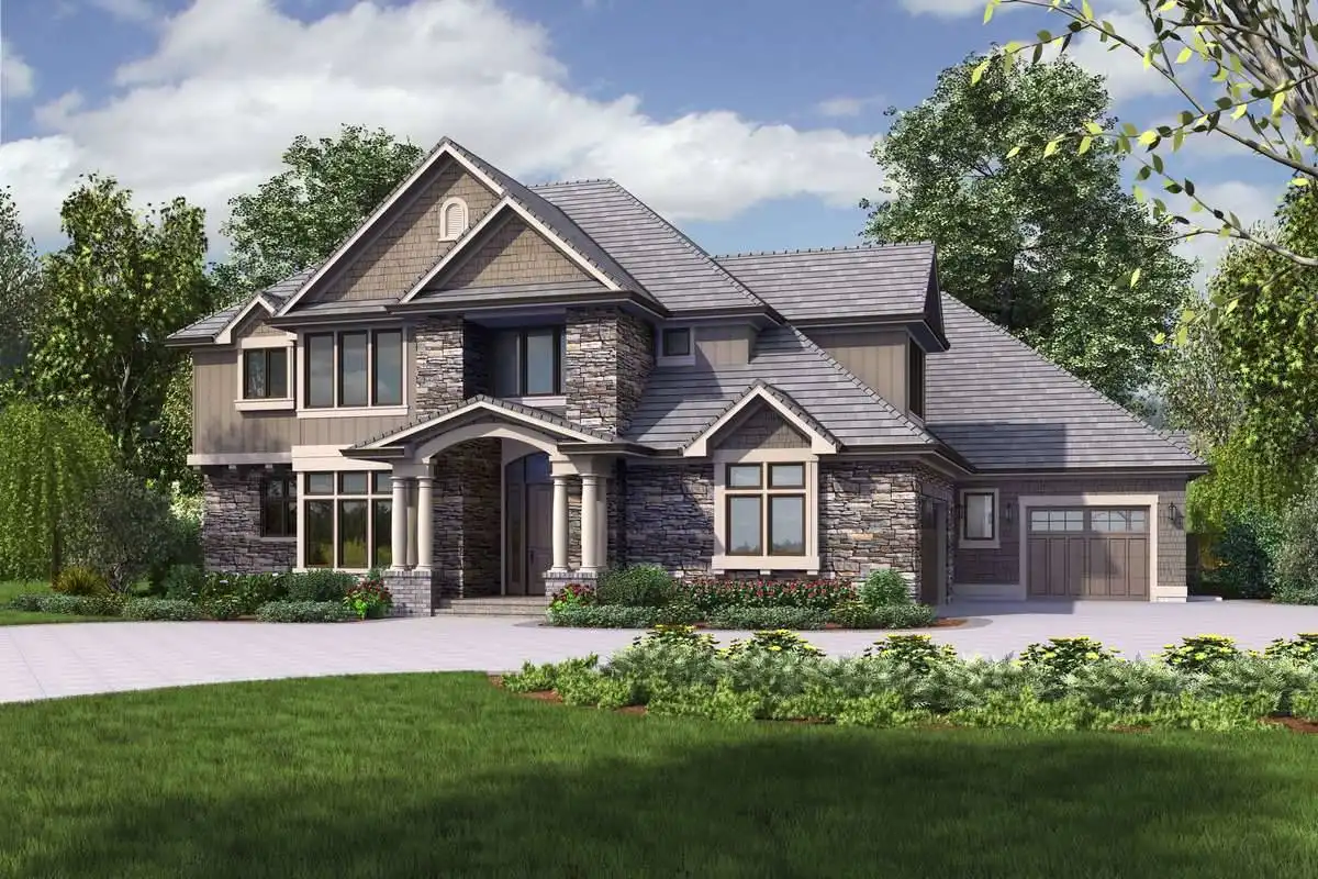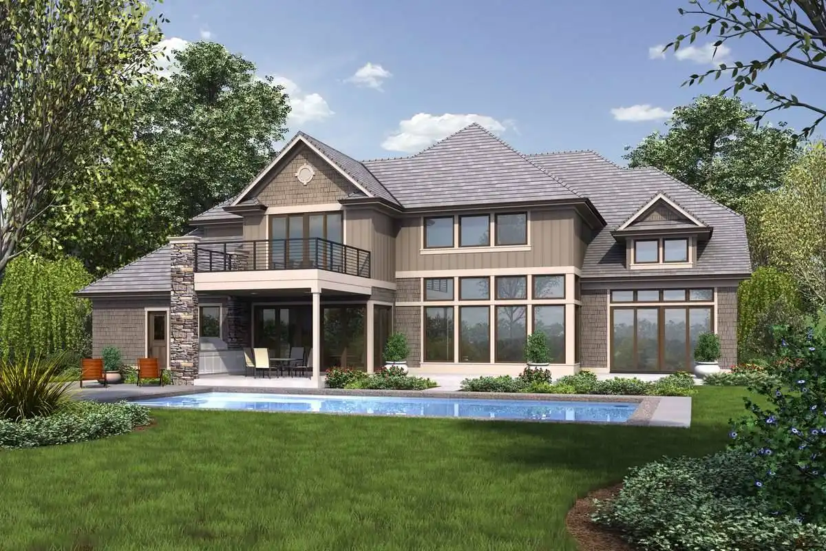 Inside this 4,997, 4 bedroom and 4.2-bathroom Craftsman style house plan are features that are sure to catch the eye. The beautiful double doors provide access to the grand foyer. An open floor layout finds the two-story great room joining with the eat-in island kitchen and dining room with its access to the outdoor living space and built-in barbecue. Off of the great room, you will be pleased to find that this home has a first-floor master suite, complete with his and hers closets, a spa bathroom with dual vanities, and a private patio. The second floor is home to three bedrooms, each with their own walk-in closets and en-suites. The highlight of this home is its spacious game room with a wet bar and your very own in-home theater, great for a family movie night. The outdoor living area, complete with a balcony that provides shade and privacy to the below patio. This outdoor area is a great place for gatherings or hosting parties of all kinds. The side of the home features two separate garages with parking for up to 3 cars, as well as a workshop.