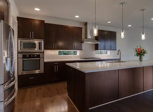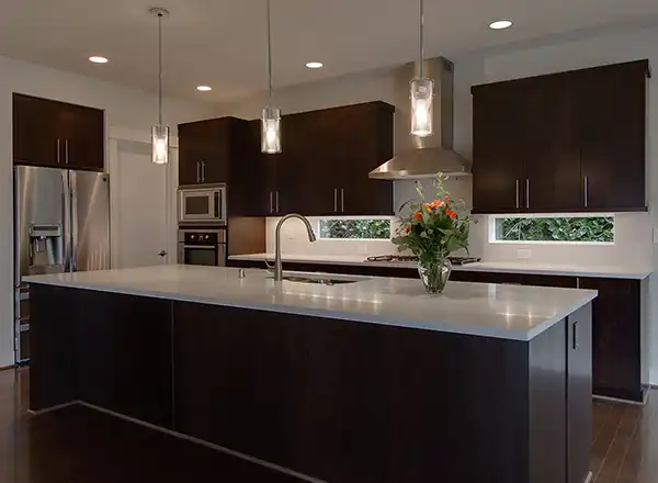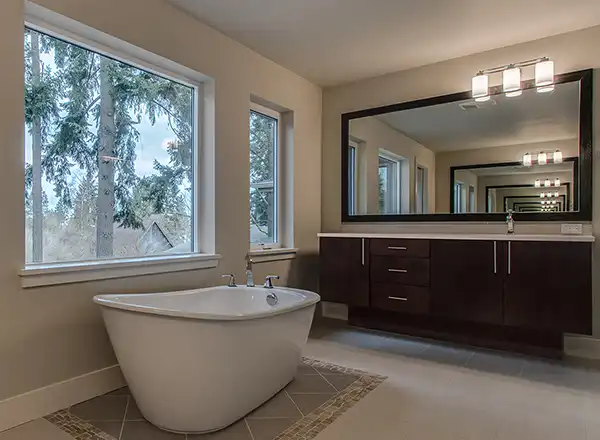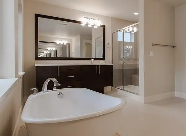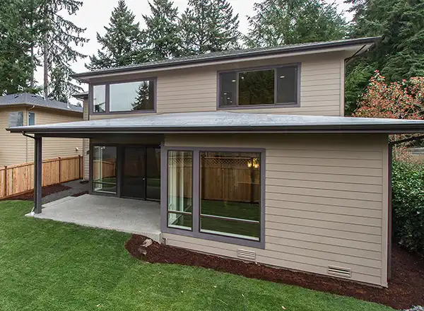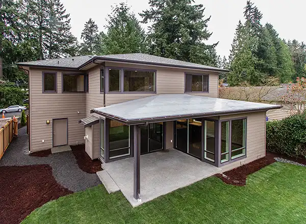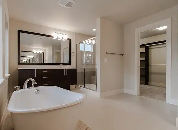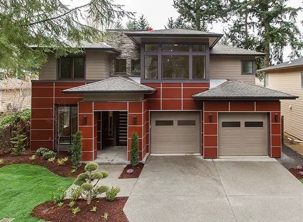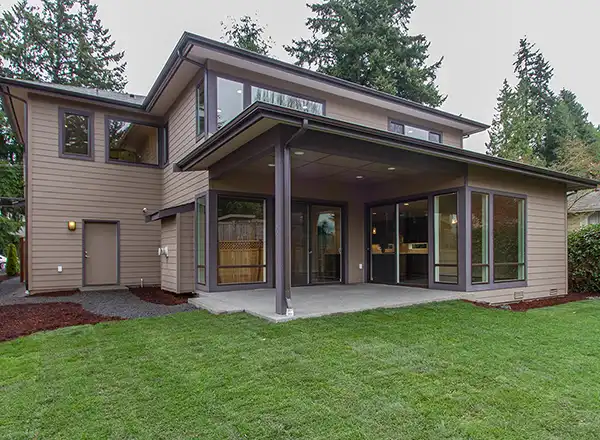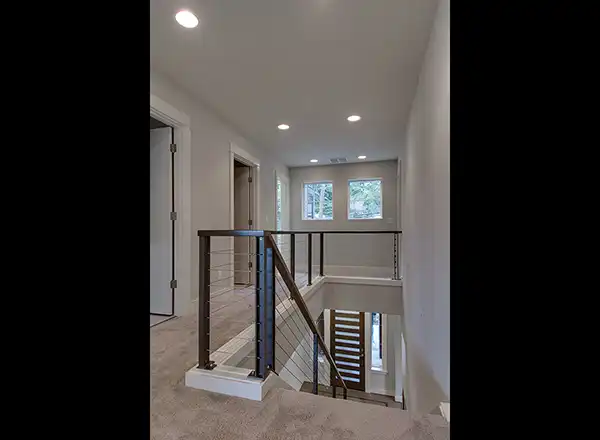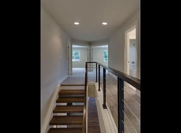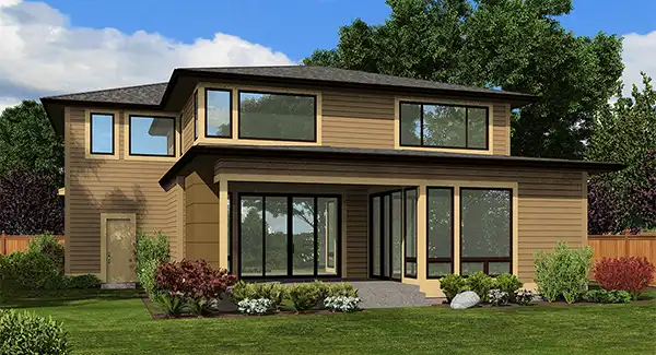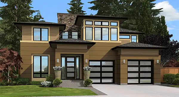 Interesting lines and plenty of glass lend a modern feel to this luxury two-story house plan, with four bedrooms, three baths and 3,025 square feet of living space. A fireplace adds interest in the open great room of this home plan, where you can relax with friends. The island kitchen includes a handy pantry. Serve a meal in the bright dining room, and then step out to the outdoor living area for a breath of fresh air and a cup of coffee. Upstairs, double doors introduce the peaceful master bedroom. The luxurious master bath boasts a garden tub, a separate shower, two vanities and a walk-in closet. Three more bedrooms share a split bath in this home design. Builders point out the versatile den, which could accommodate overnight guests, with a walk-in closet and direct bath access. The sizable bonus room would make a nice playroom.