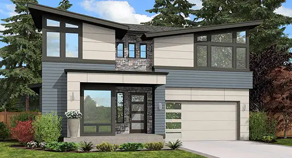 Passersby will be captivated by the many windows of this modern two-story house plan, with three bedrooms, 2.5 baths and 2,655 square feet of living space. You can host any party with ease in this home plan, because the island kitchen flows into the versatile dining area and the comfortable great room. Other features of the home design include the breezy outdoor living space, the quiet den and the posh master suite. Our customers love the family foyer and the sizable pantry. Upstairs, the bonus room could serve as a playroom for the kids.