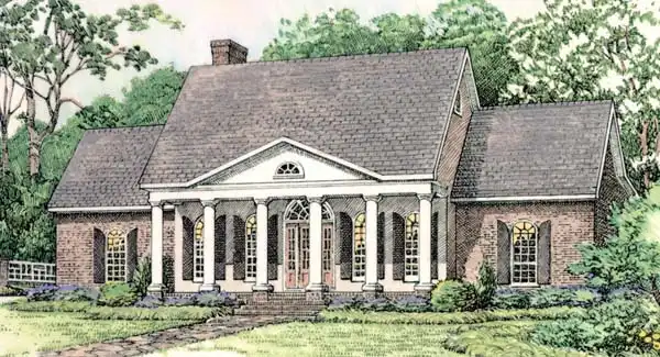This home is blushing with romance. The symmetry is desired while the bayed areas of the master suite and breakfast area add to it's charm. Split bedrooms create a private retreat for the master suite. Built-ins frame the greatroom and the kitchen enjoys a walk-in pantry and built-in desk area. The future space provides an additional 376 square feet of space.