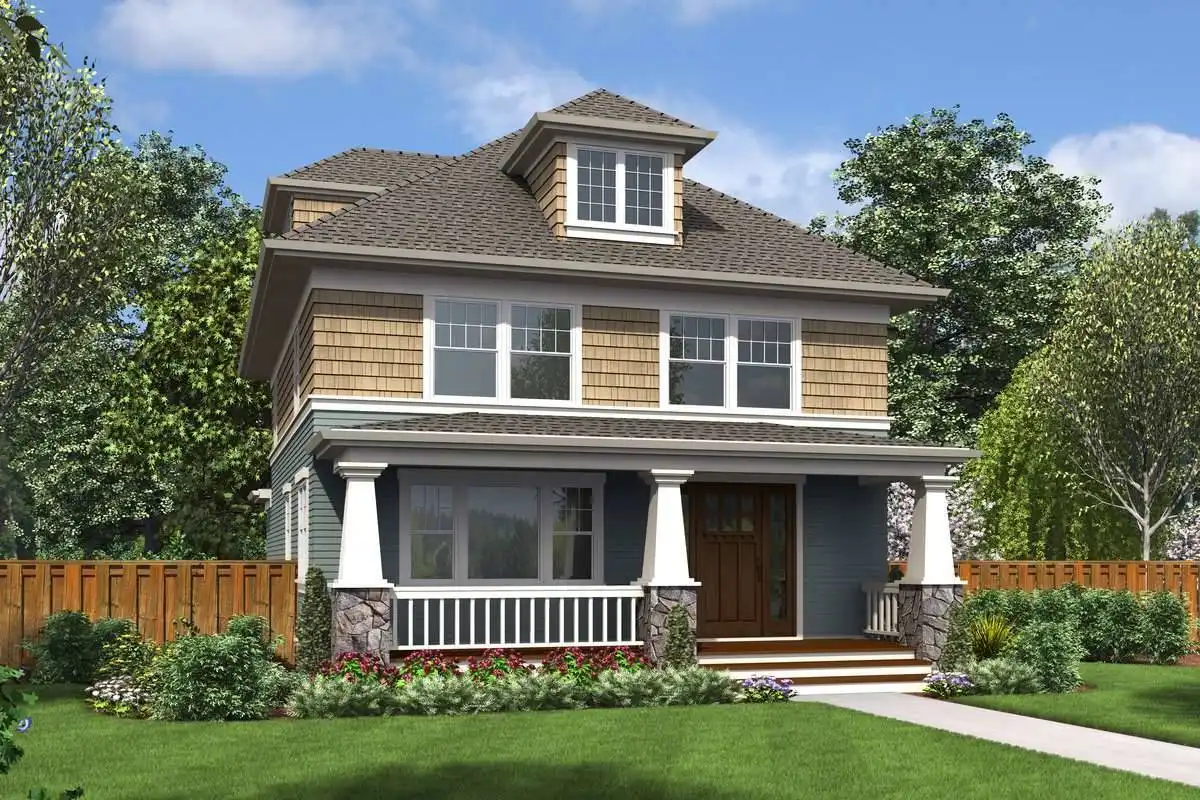 This Craftsman 2-story cottage house plan boasts 3 bedrooms and 2.5 bathrooms in beautiful 2,236 s.f. floor plan. Once inside, the grand foyer finds a staircase to your left and a large office to your right with a convenient powder room. This home’s natural flow then brings you in to the living room, highlighted by its back-porch access and cozy fireplace that ties the space together. Thanks to an open concept, the gourmet kitchen joins the room, as does the dining nook and its gorgeous windows with natural light. Upstairs you will be pleased to find 3 bedrooms, 2 of which share a hallway bath. The master suite features its own private en-suite, complete with a tiled walk-in shower, garden tub, and great walk-in closet featuring plenty of convenient built-ins. This home’s great offerings aren’t finished yet though, as you will discover an expansive walk-in attic that has more storage than you could ever imagine, ensuring that this home can grow alongside you in your family as you accumulate memories and items, preventing your home from feeling cluttered or crowded.
