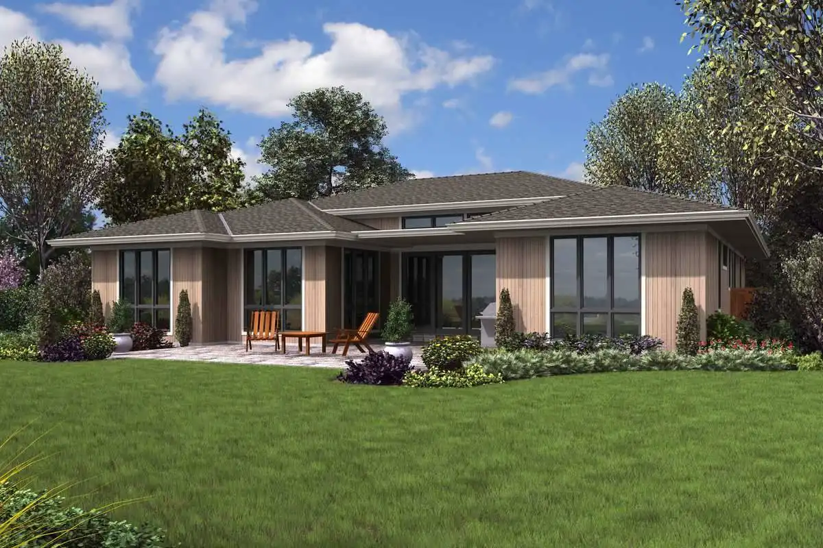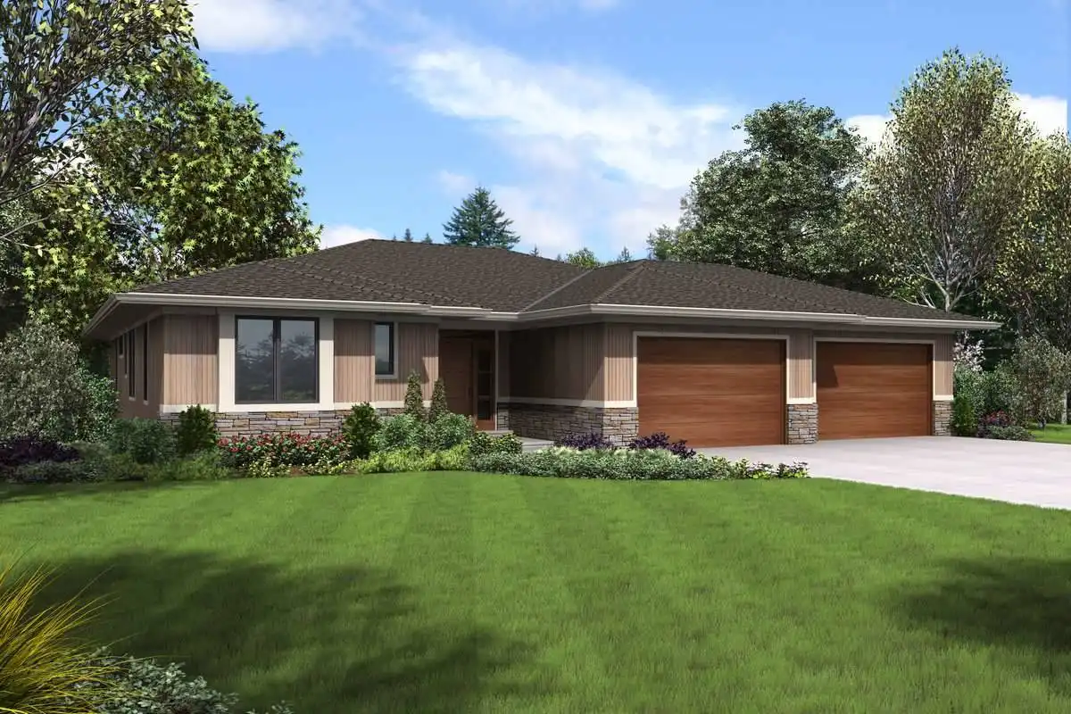 What looks like a small and quiet home from the street is actually an expansive 2,814 square foot sprawling floor plan with an impressive footprint. An amazing 4-car garage ensures plenty of parking for everyone, while a designated workshop area is perfect for your inner hobbyist or craftsman. A covered front porch protects the front entry. Once inside, you’ll find yourself in the heart of the home. Ahead of you lies the living room and open kitchen and dining nook, and to your right, a bedroom and full bathroom, as well as an office that can double as a guest suite. Overall, this home provides 4 bedrooms, including dual masters, both of which have their own en-suites, as well as amazing walk-in closets. The two masters are equally as beautiful and can be found on either end of the home. In between the two suites, spend quality family time together both inside and out, thanks to the sliding glass doors off of the living room that open to the outdoor living space. Entertaining becomes a breeze as well, with this home providing subtle features such as a built-in wine bar and media center in the living room.