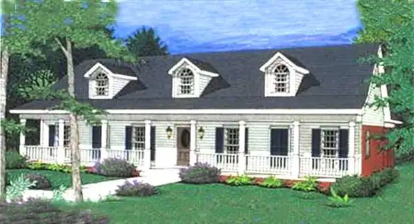 Country at it's finest! You'll enjoy many conversations on this cozy front porch that extends the width of the home. The country kitchen has an island cook-top, wall oven, snack bar and walk-in pantry for plenty of storage. The great room is made even more special with a tray ceiling. The master bedroom is located for privacy and those midnight snacks. A spa style bath contains a corner whirlpool tub, large shower, dual sinks and easy access to the walk-in closet. This house has lots of storage and even more to offer your family.